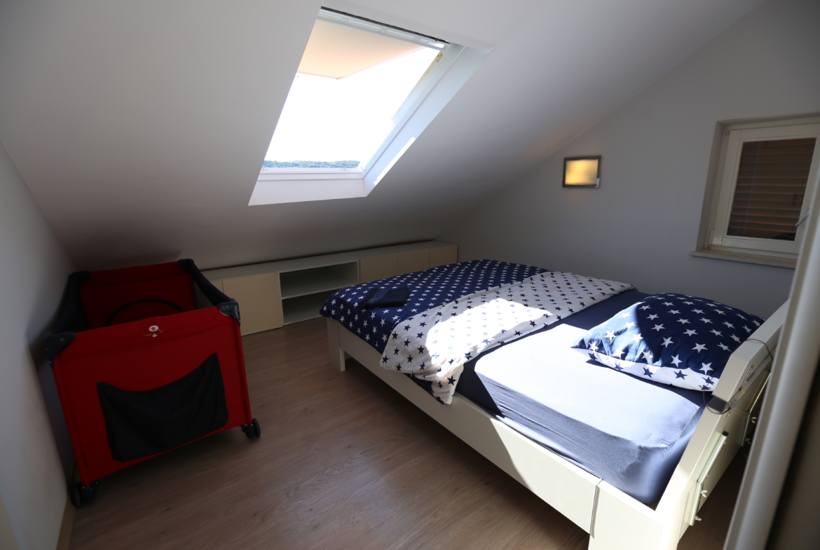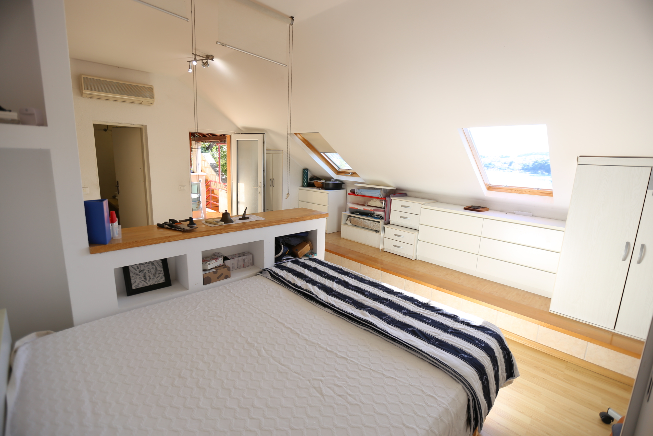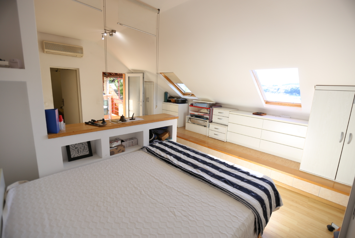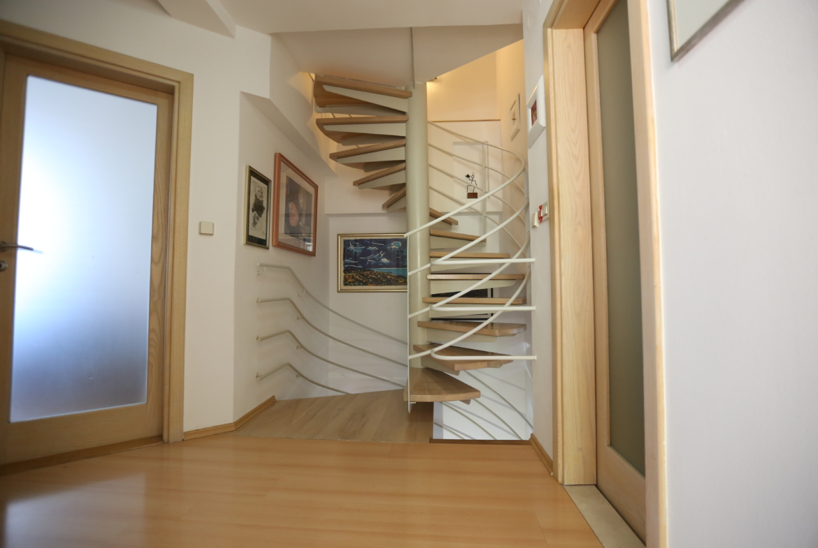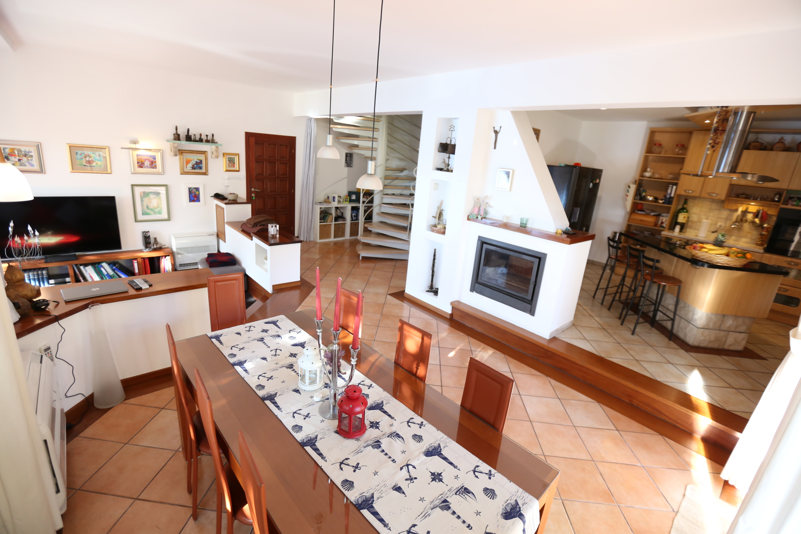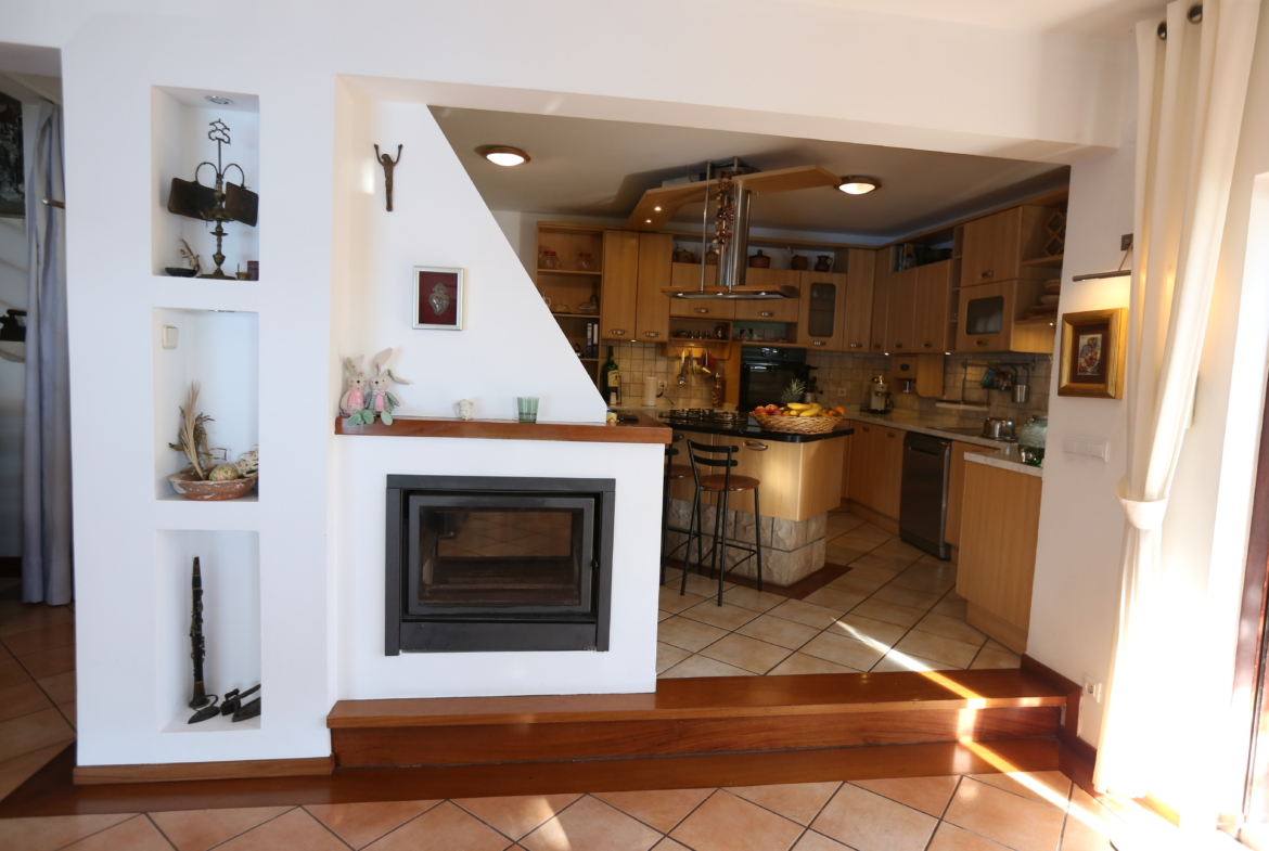 Proteže se na tri etaže, prizemlje, kat i potkrovlje. U prizemlju se nalazi prostrani boravak s dvostranim kaminom, blagovaonski prostor s kuhinjom i izlaskom na terasu i bazen, te kupaonica. Na katu se nalaze tri spavaće sobe od kojih jedna ima pripadajuću kupaonicu, te još jedne dodatne kupaonice. Potkrovlje veličine 56 m2, sastoji se od dnevnog boravka, kuhinje, spavaće sobe i kupaonice, potkrovlje ima prolaz kroz stubište te zasebne stepenice za izlazak na bazen.