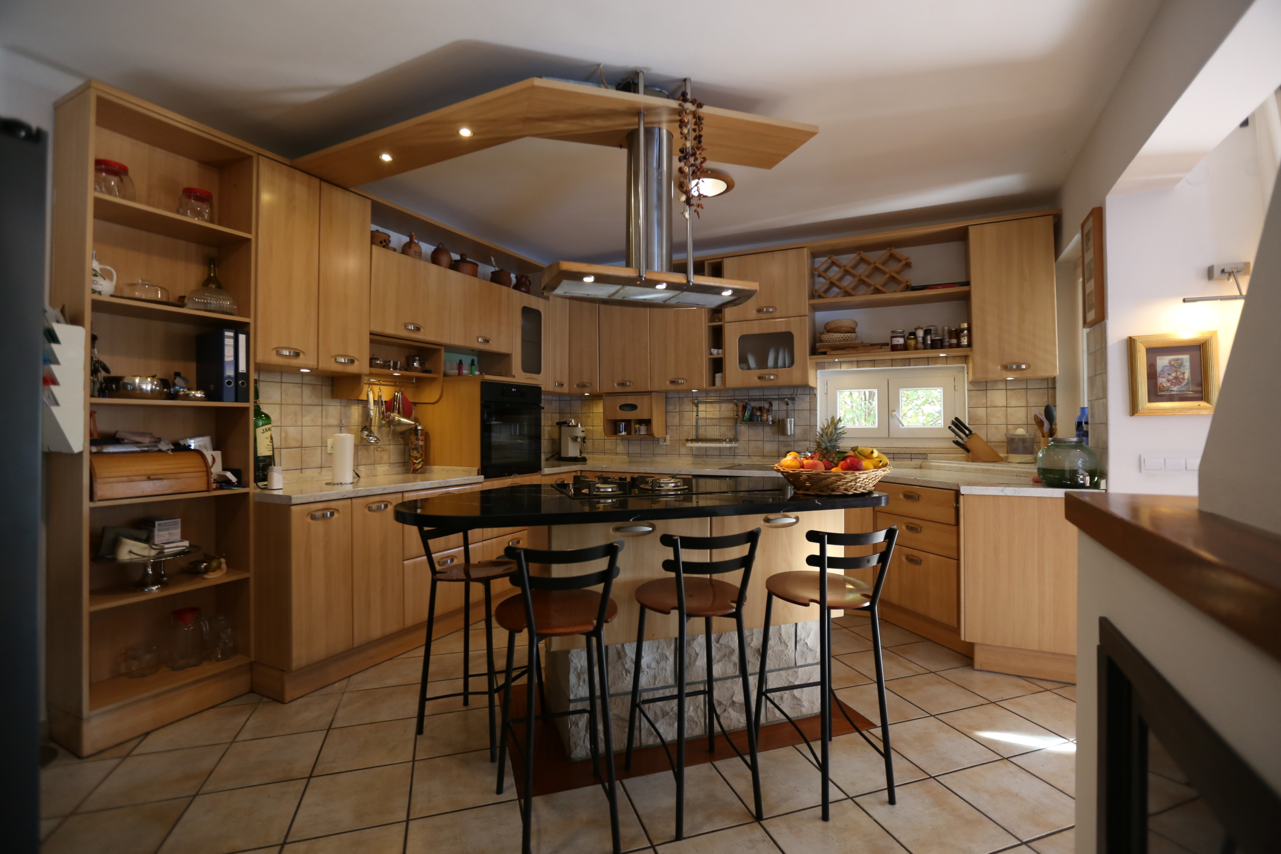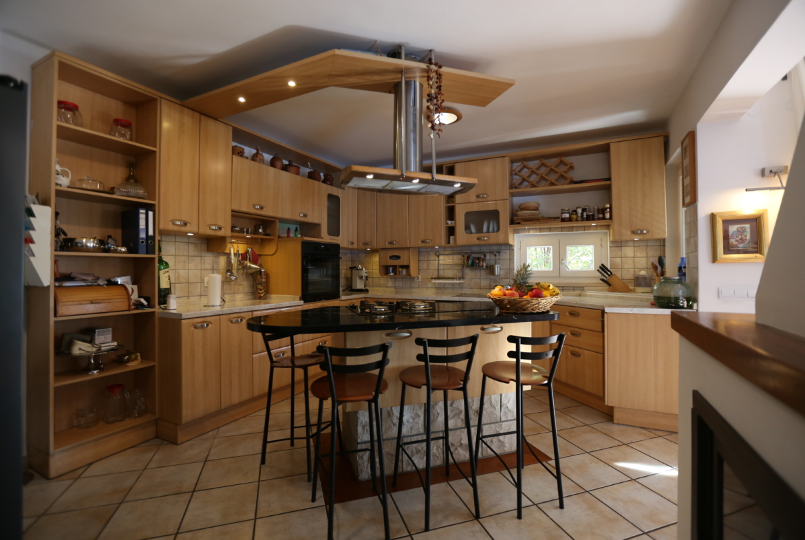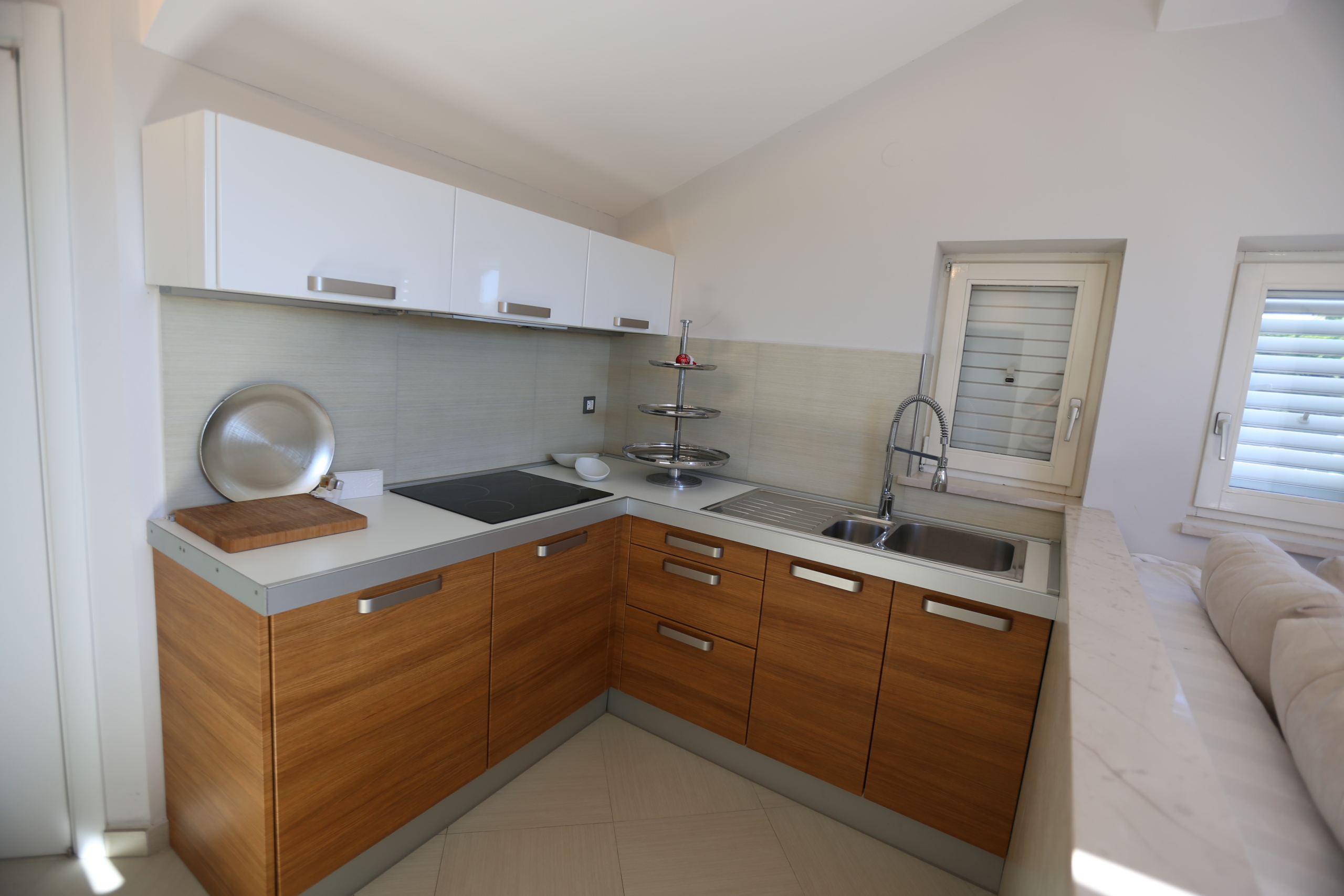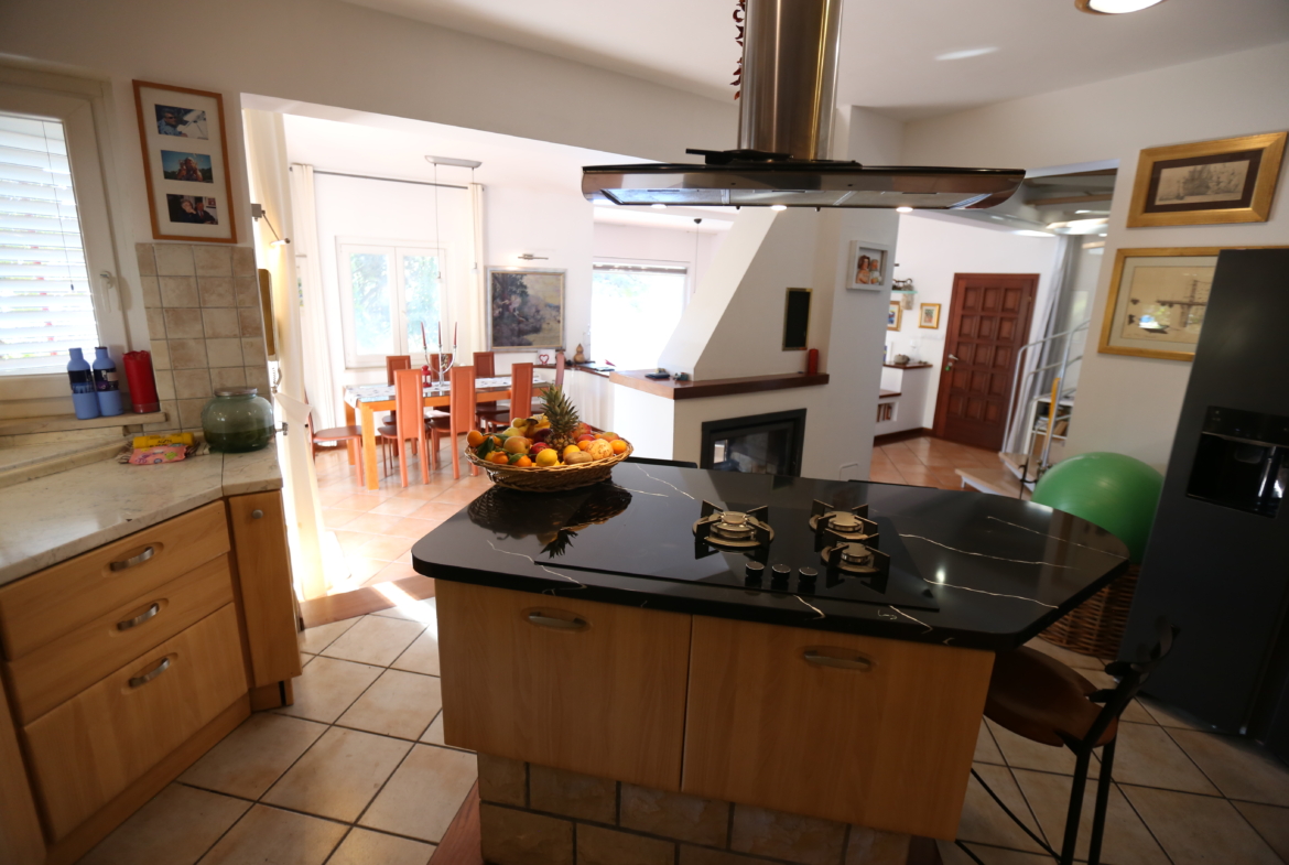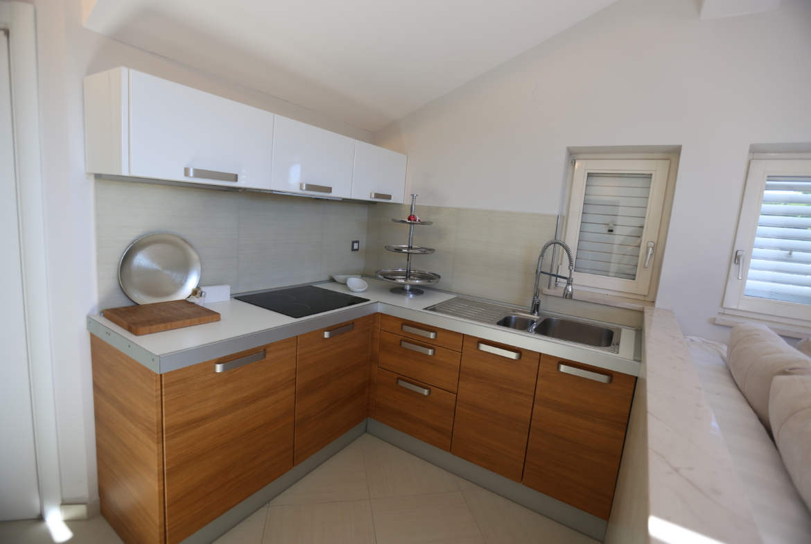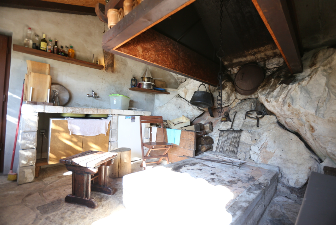 Vanjska terasa veličine 30 m2, opremljena je kompletnom plinskom kuhinjom, stolom za 14 osoba, kamenim sudoperom, te roštiljem i malom dizalicom za drva. S terase se dolazi i do malog objekta od 3,5 m2, u kojem je smješten vešeraj i smočnica.