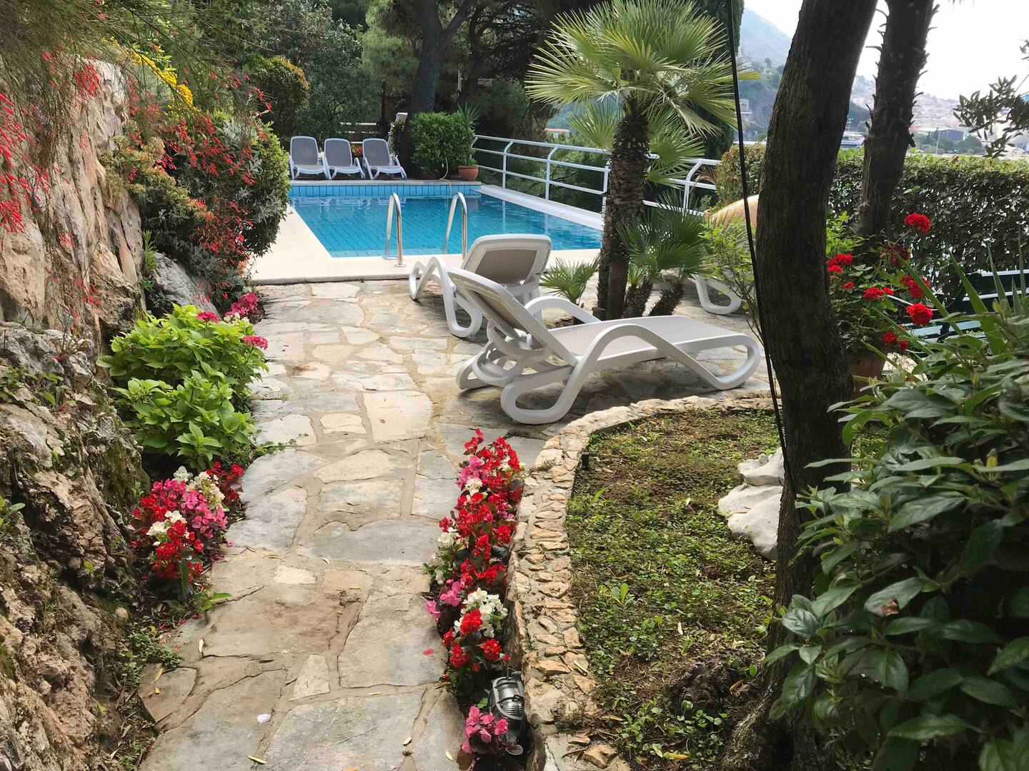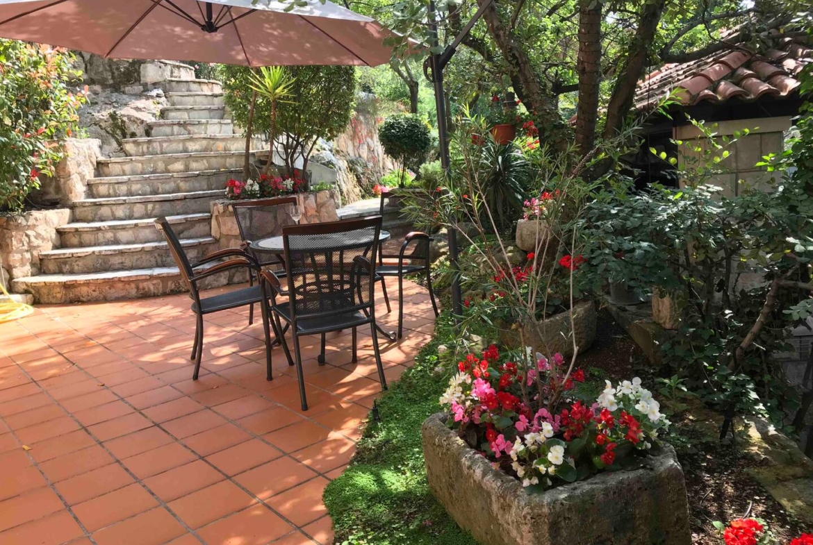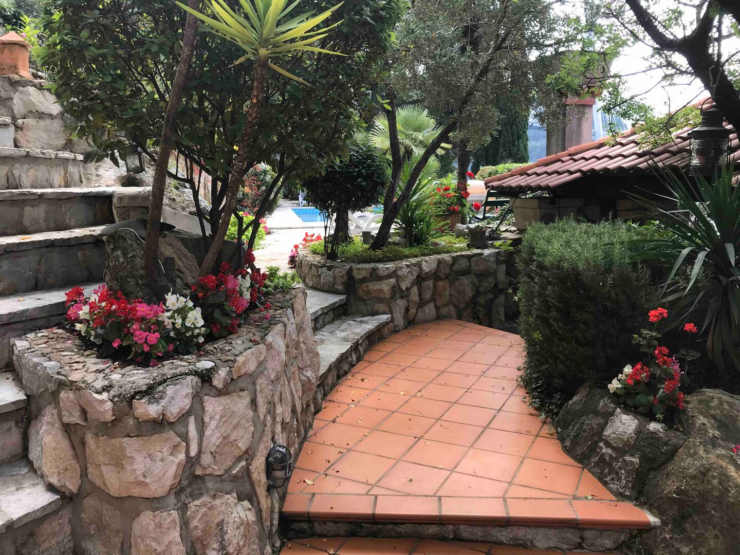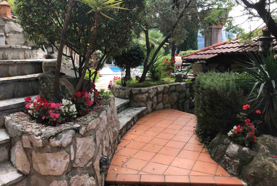 Okućnica je uređena s prekrasnim kamenim vrtovima, stepeništima i terasama u mediteranskom stilu s 40 stabala maslina, naranči, limuna, palmi i ostalih mediteranskih biljaka, te posađenom travom na ravnim površinama.