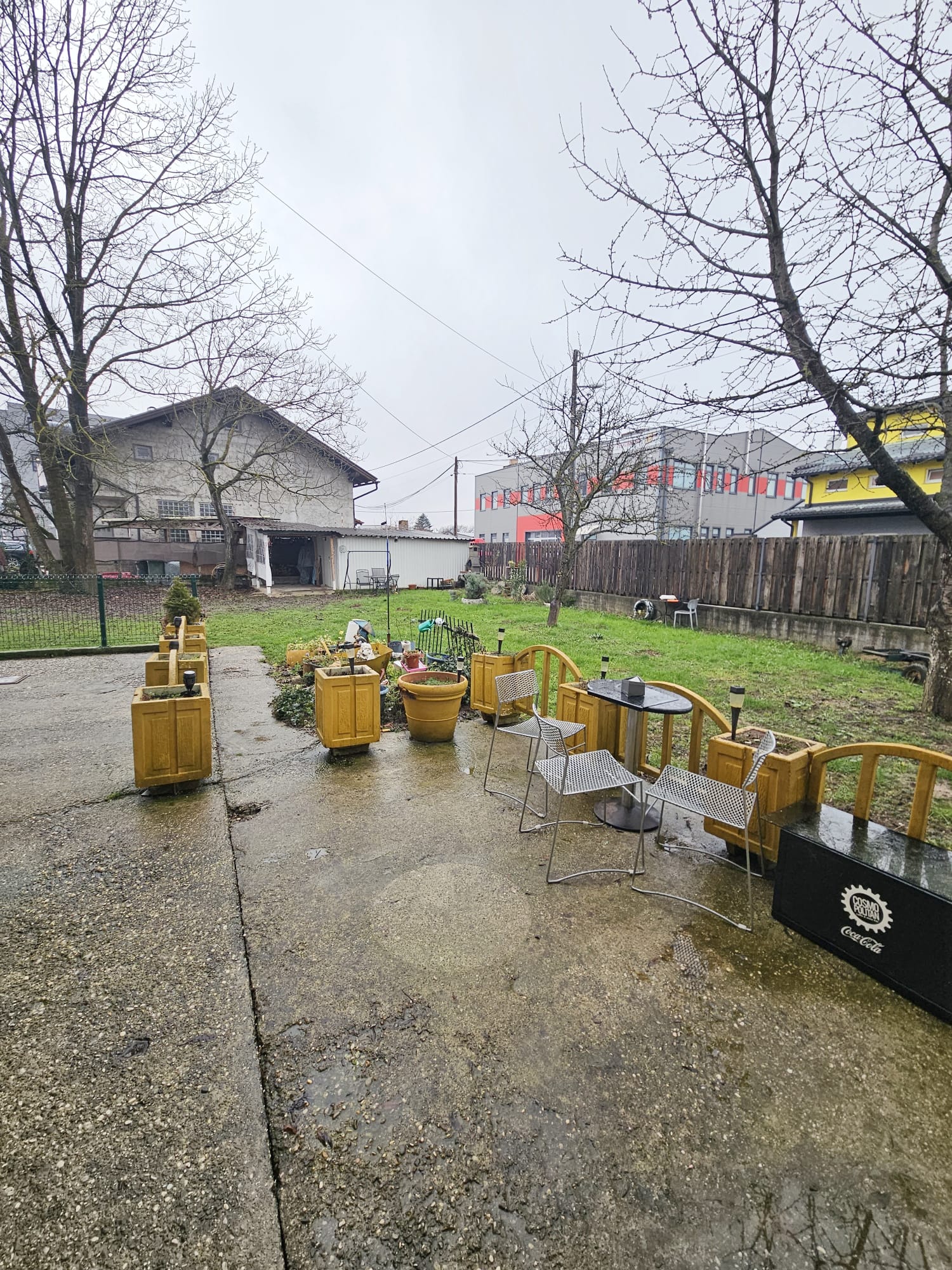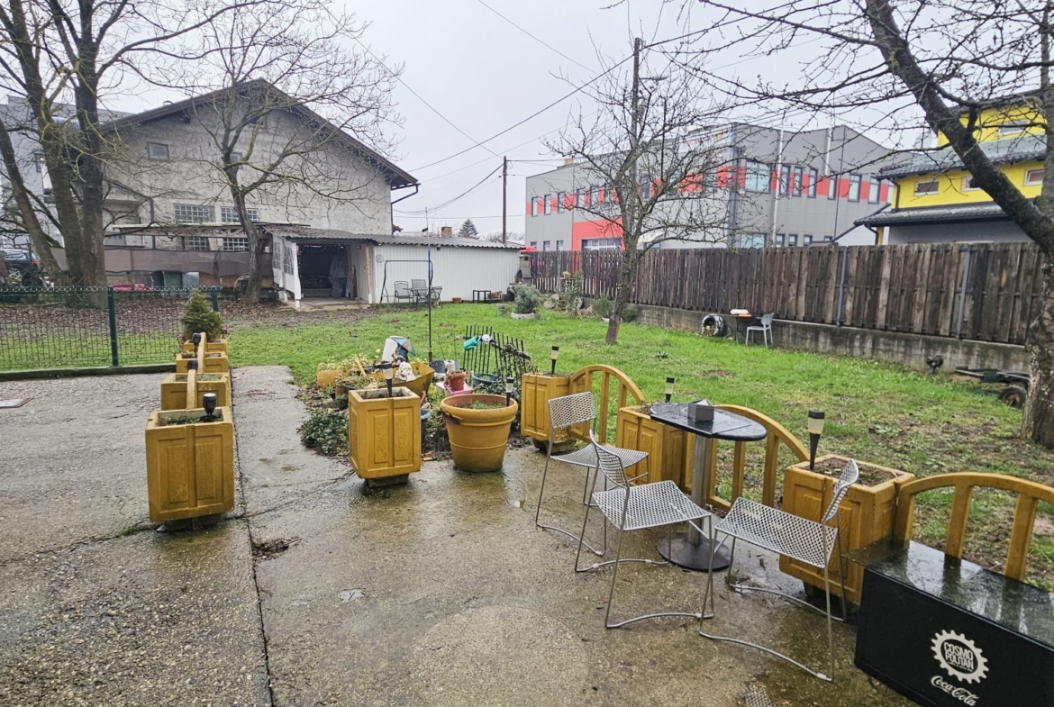 Stan ima zaseban ulaz s dvorišne strane, te pripadajuću terasu i ograđeno dvorište od 300 m². Stanu pripadaju dva parkirna mjesta s ulične strane ispred dvorišta.