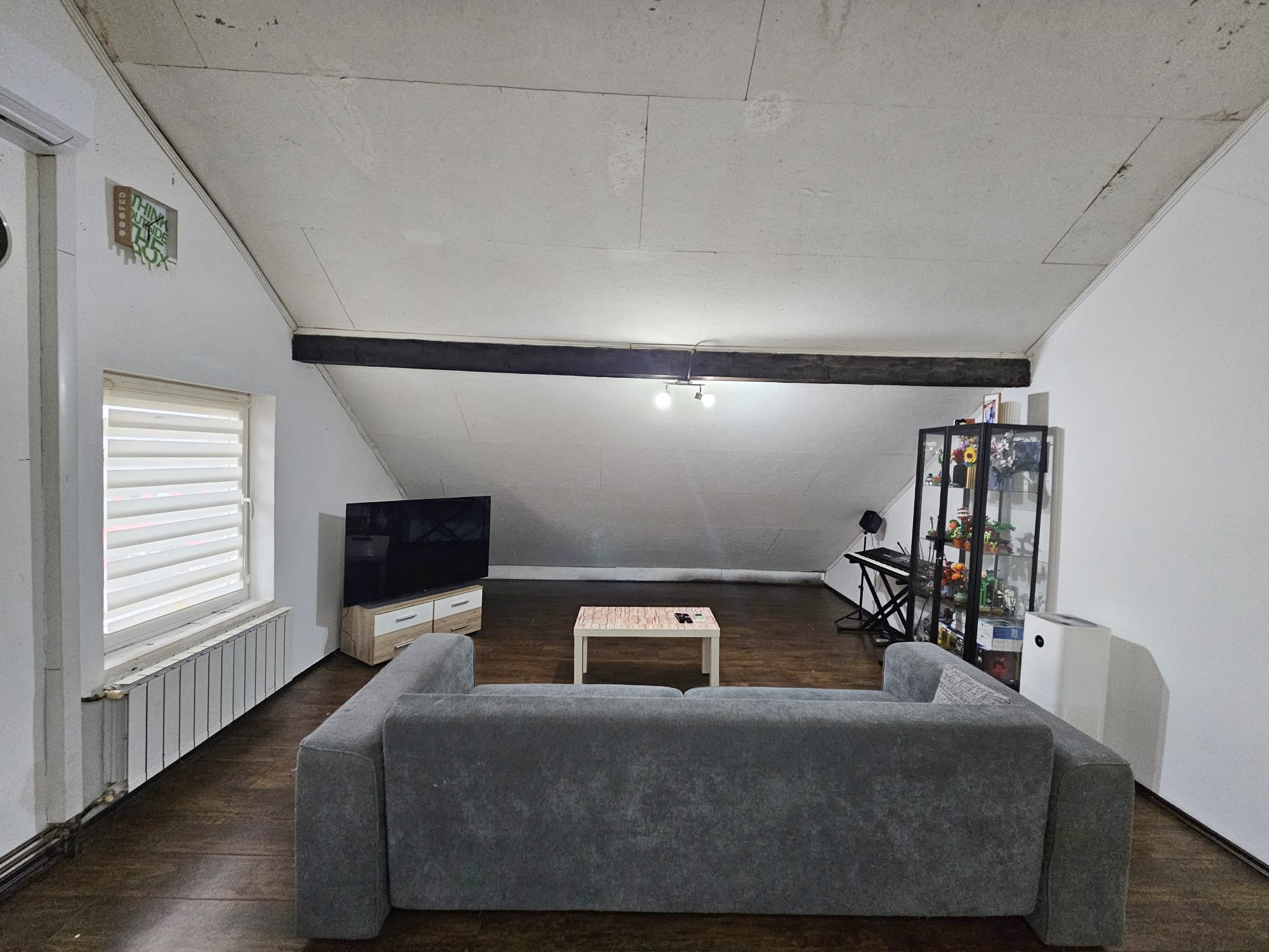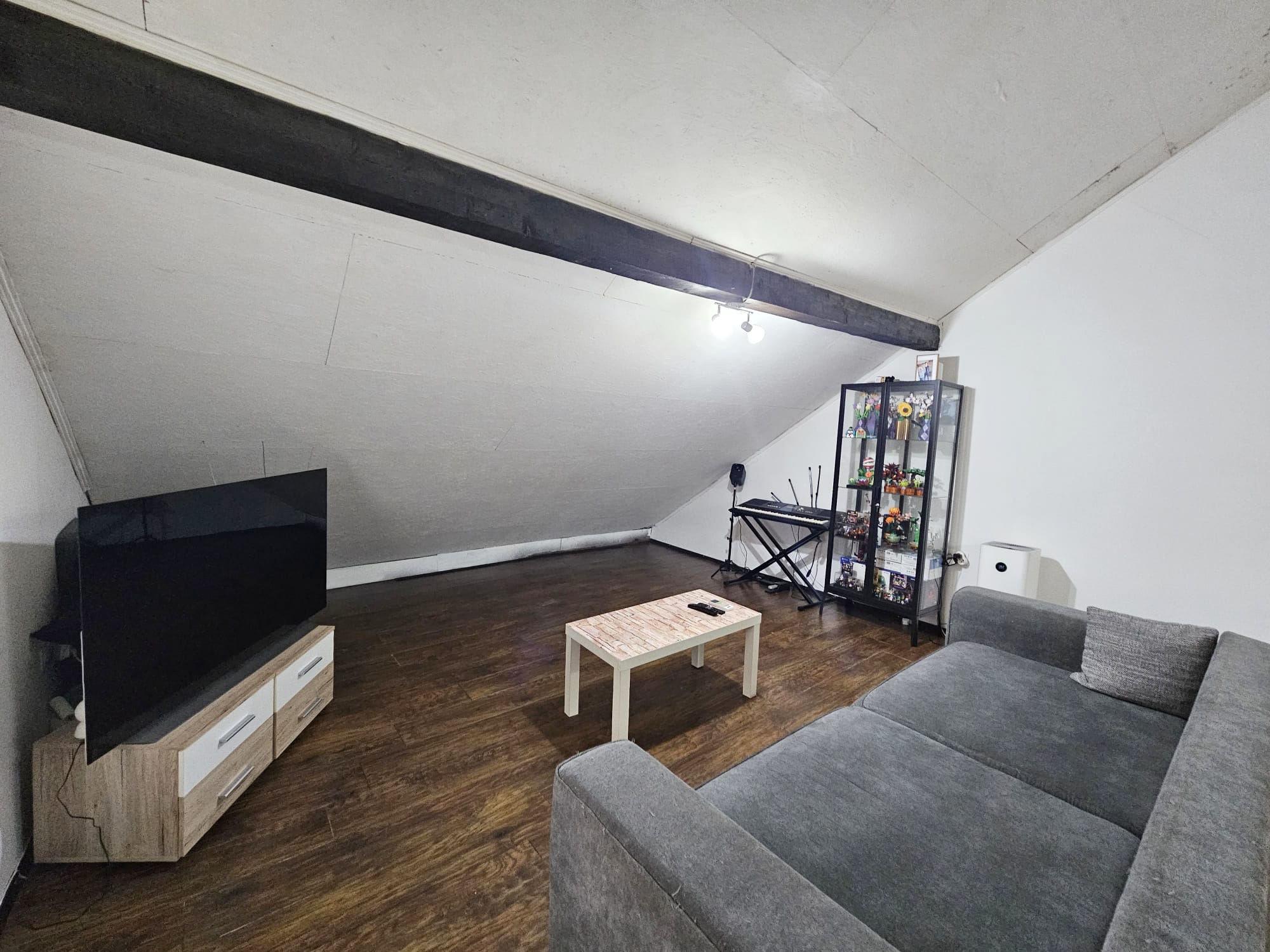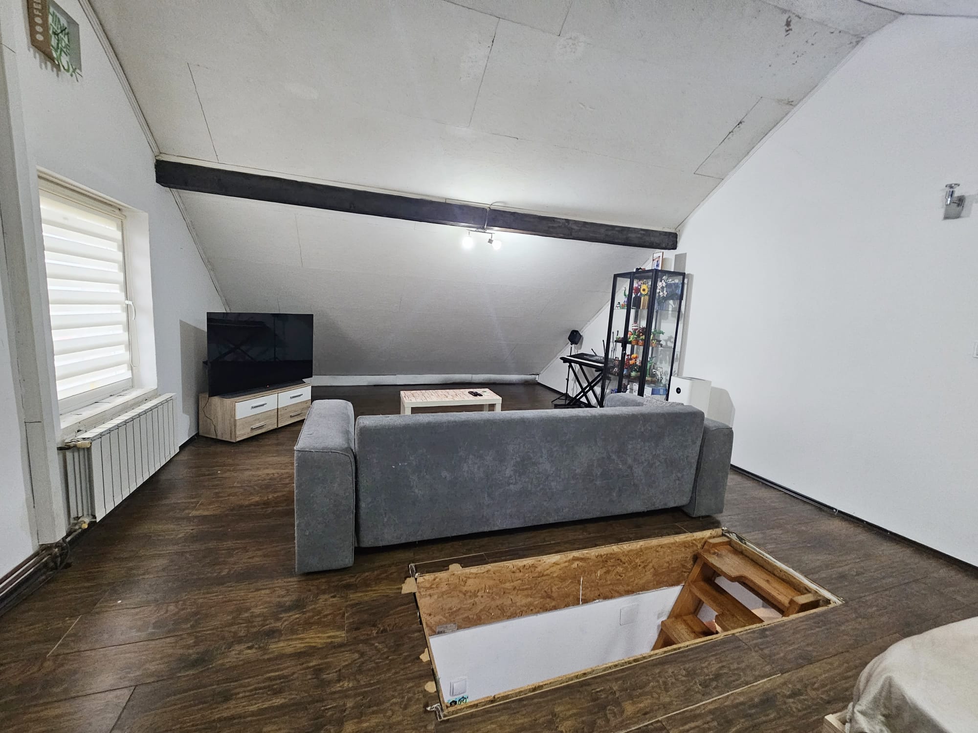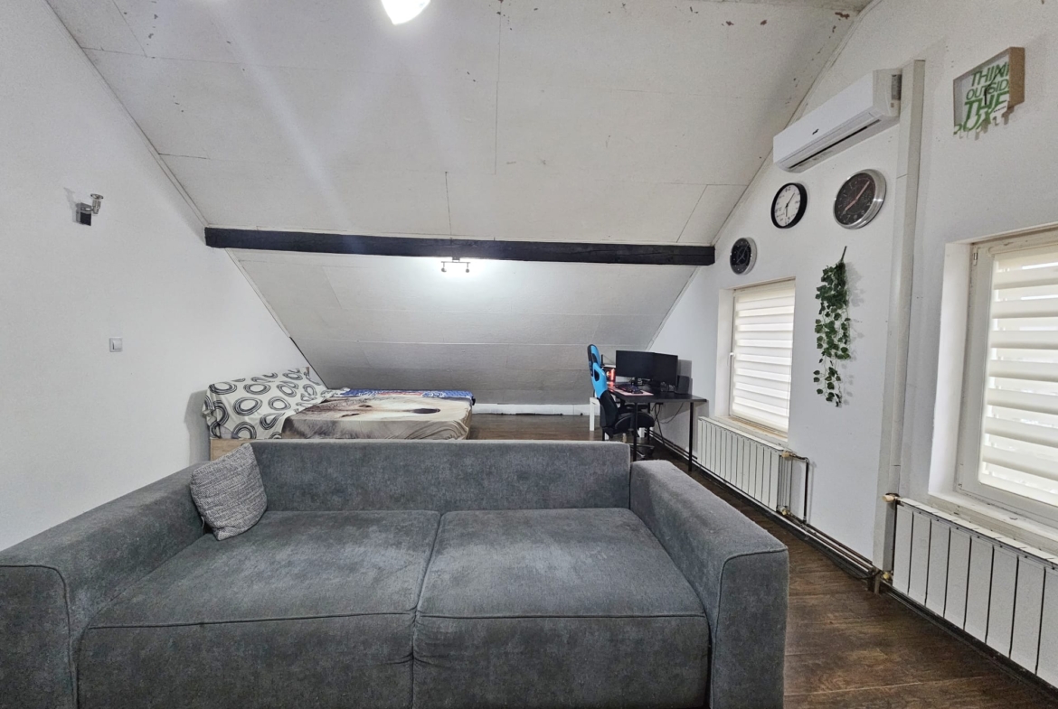 Stan se sastoji od hodnika, sobe, kuhinje i blagovaonice, te kupaonice u prizemlju. Na katu se nalazi otvoreni prostor za spavaonicu i dodatni dnevni boravak.