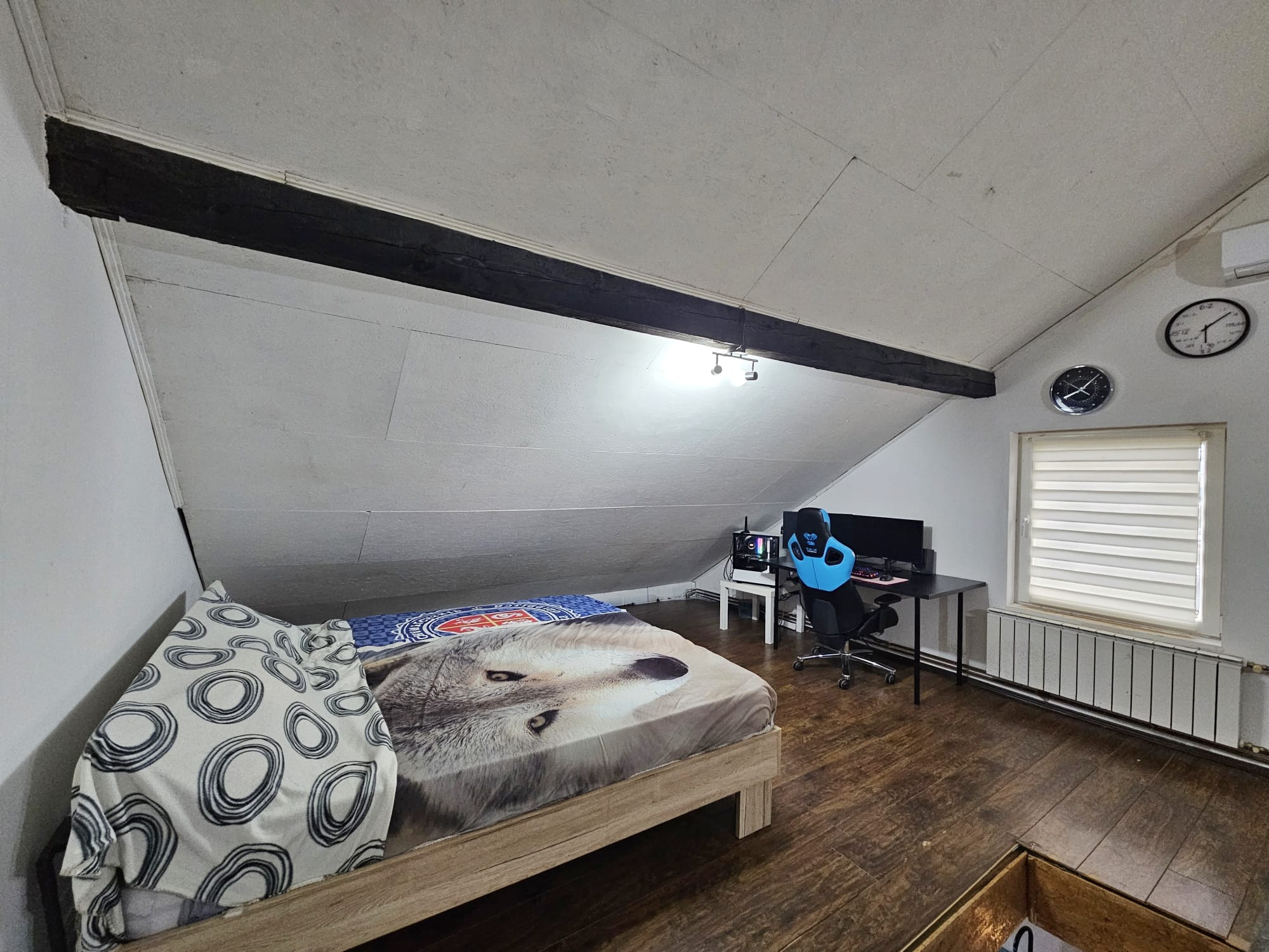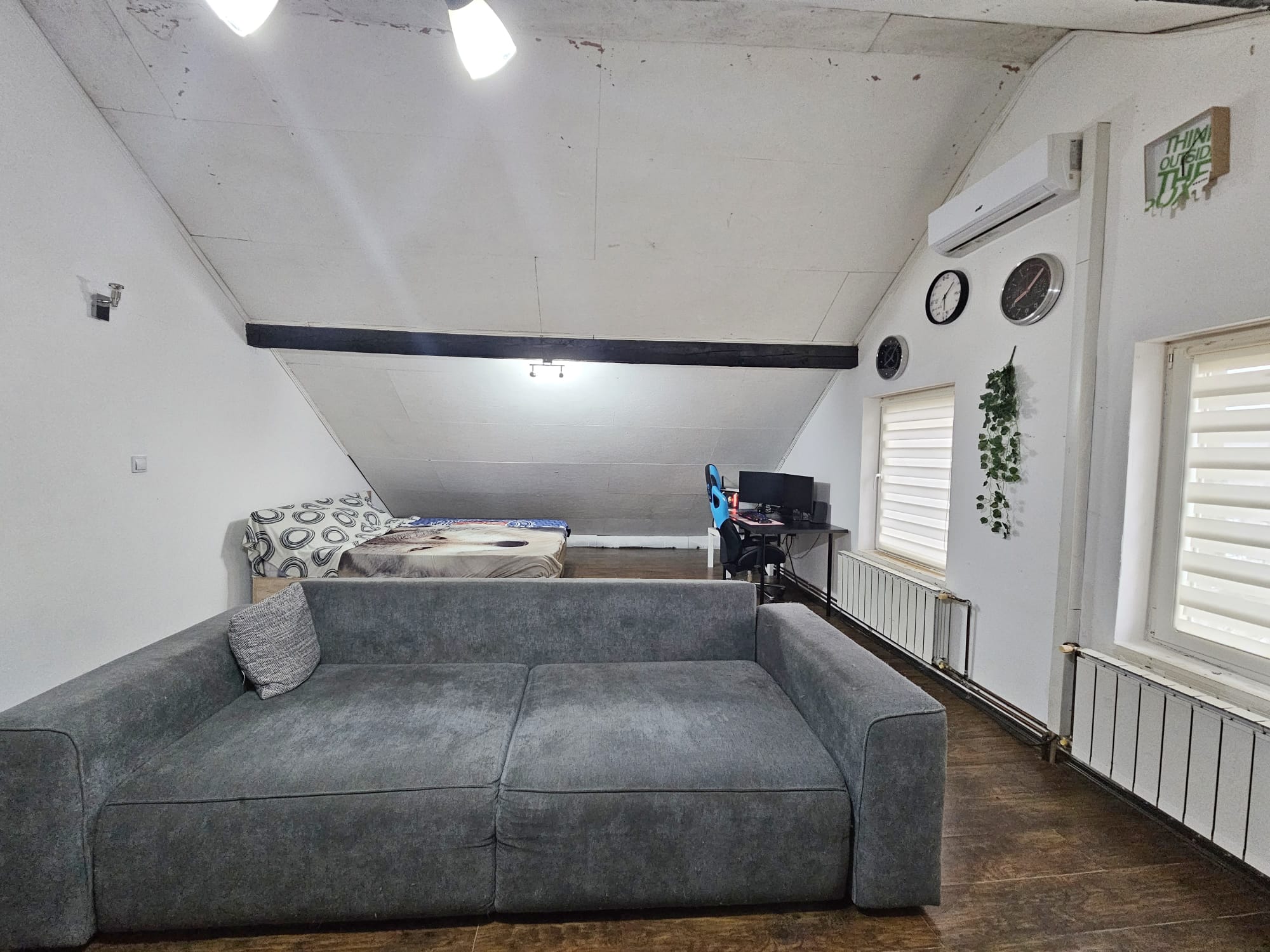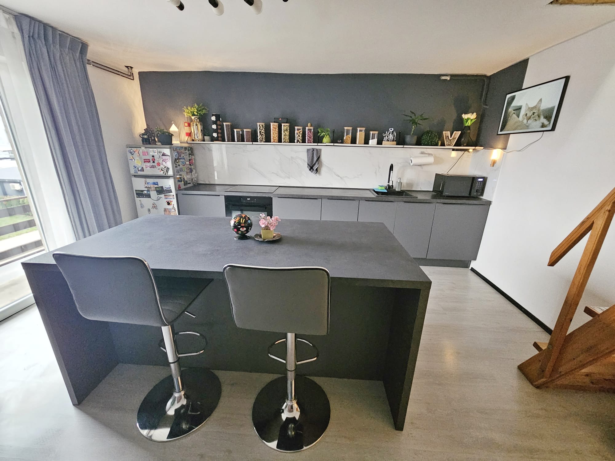 Stan se sastoji od hodnika, sobe, kuhinje i blagovaonice, te kupaonice u prizemlju. Na katu se nalazi otvoreni prostor za spavaonicu i dodatni dnevni boravak.