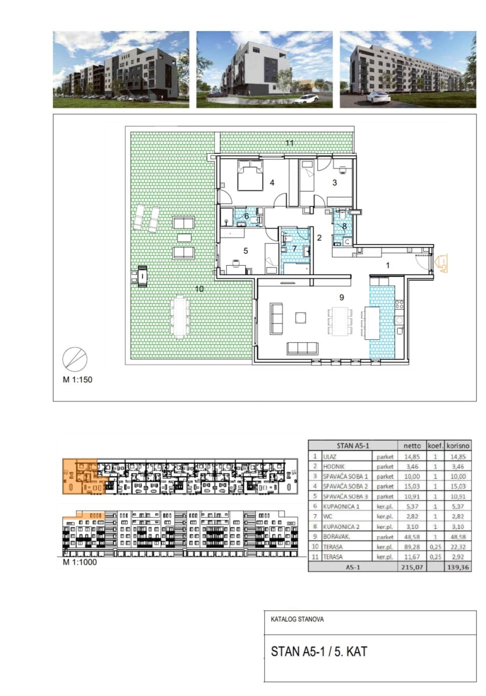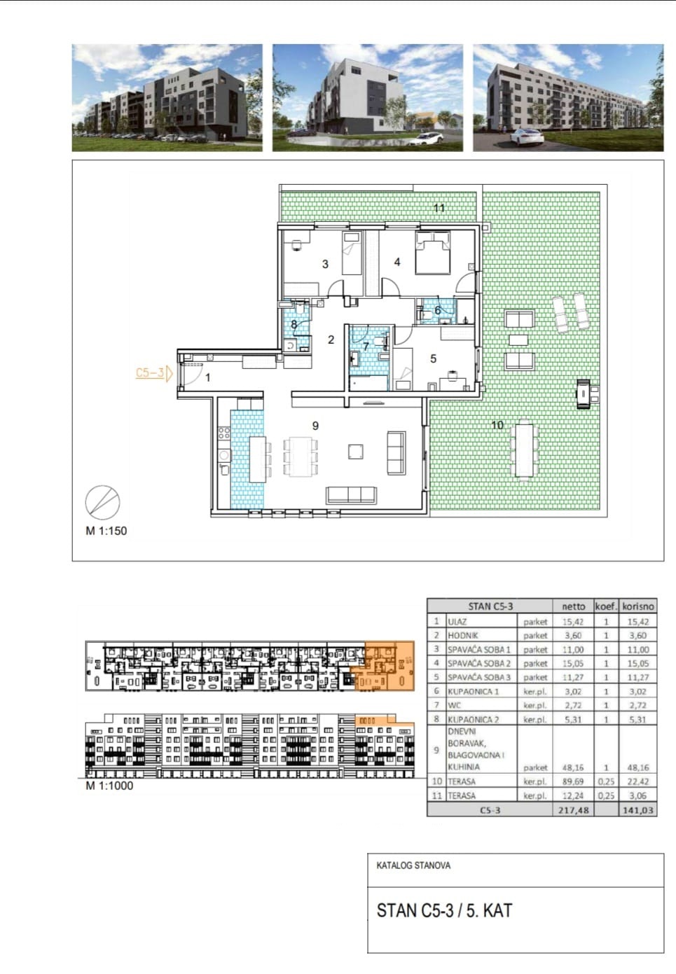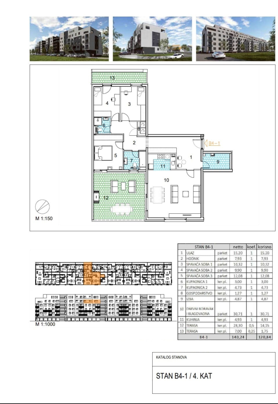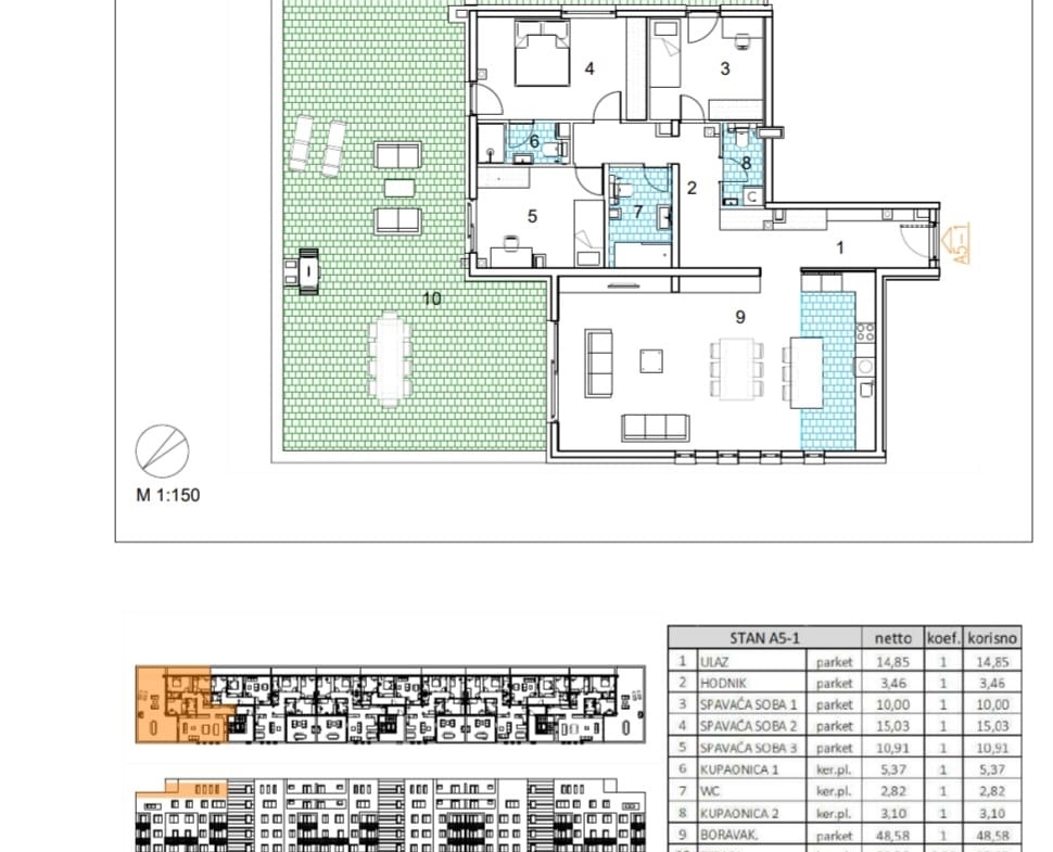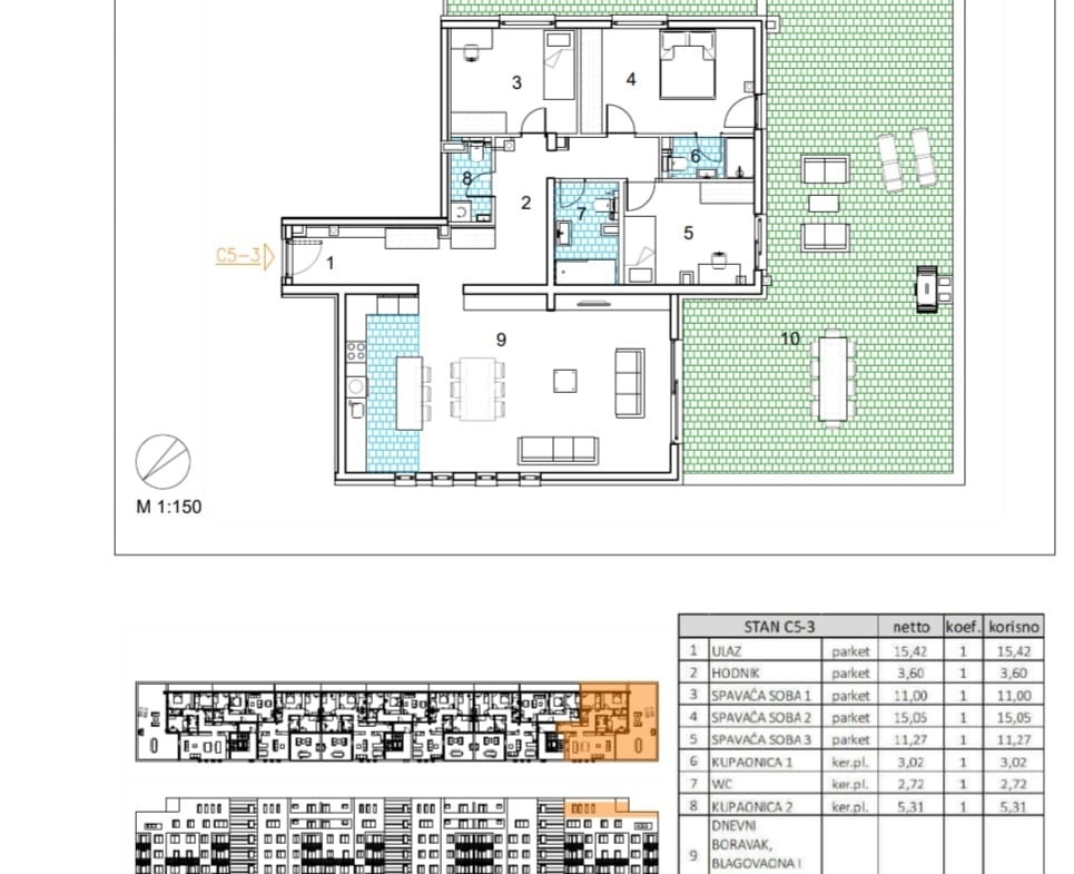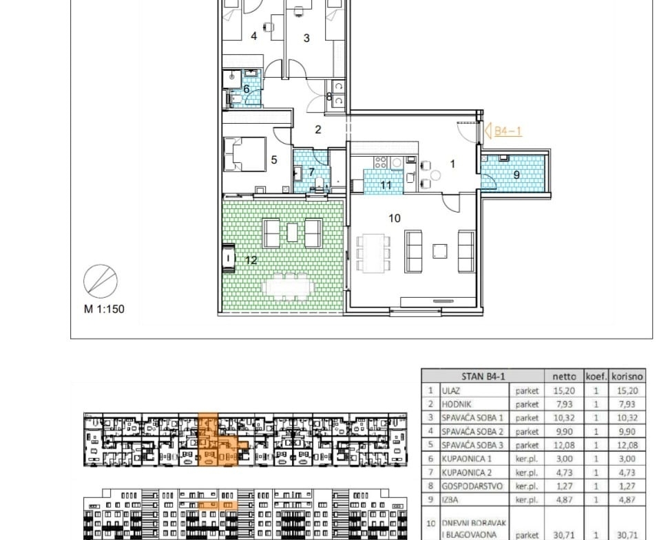Netto površina stana je 120.84 m2, a sastoji se od: