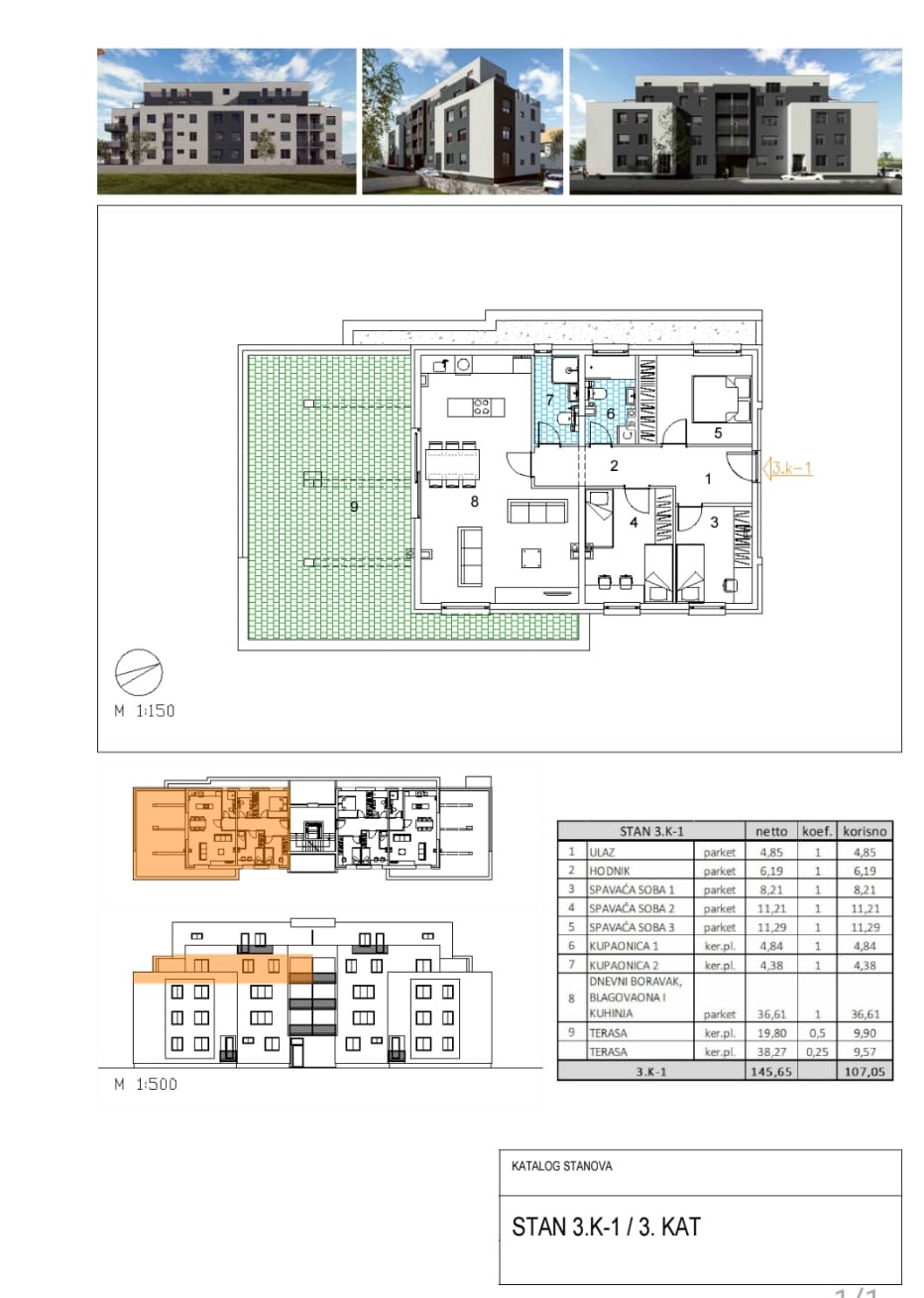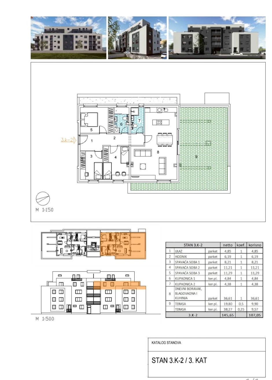 Četverosoban stan od 107 m2, dostupan na 3. katu kvalitetne novogradnje, od ukupno 5 katova, energetskog razreda A/A+. Već prepoznata kvaliteta provjerenog investitora, osigurava odličnu izvedbu i dobro osmišljen projekt.