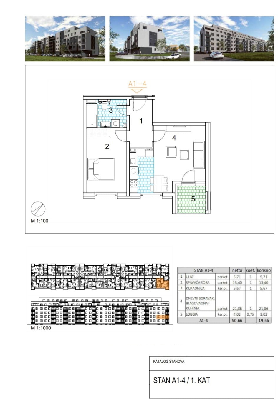 Dvosoban stan od 46.57 m2, na 1. katu kvalitetne novogradnje, od ukupno 5 katova, energetskog razreda A/A+. Već prepoznata kvaliteta provjerenog investitora, osigurava odličnu izvedbu i dobro osmišljen projekt.