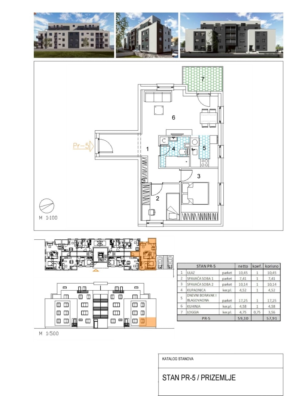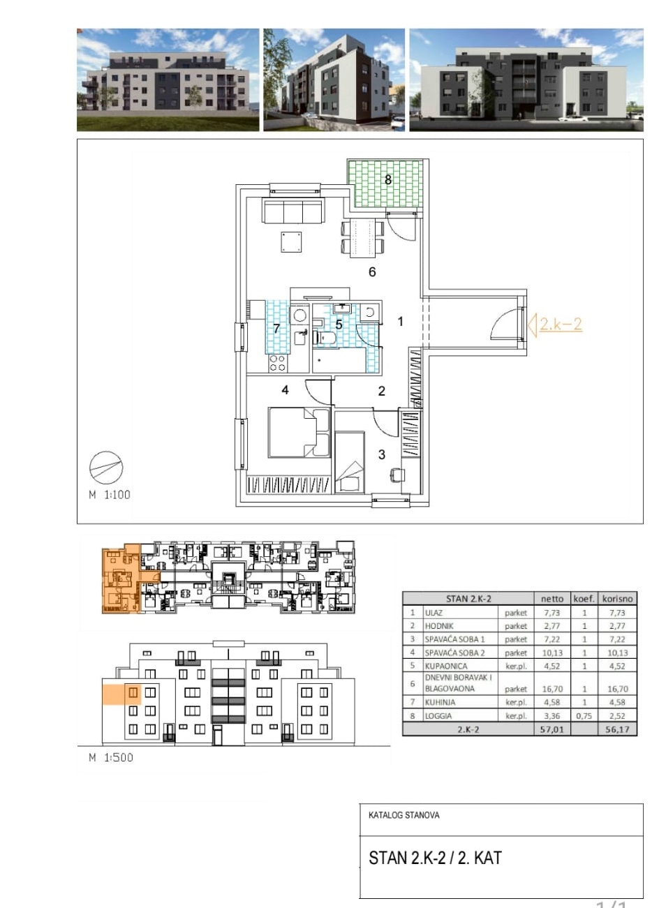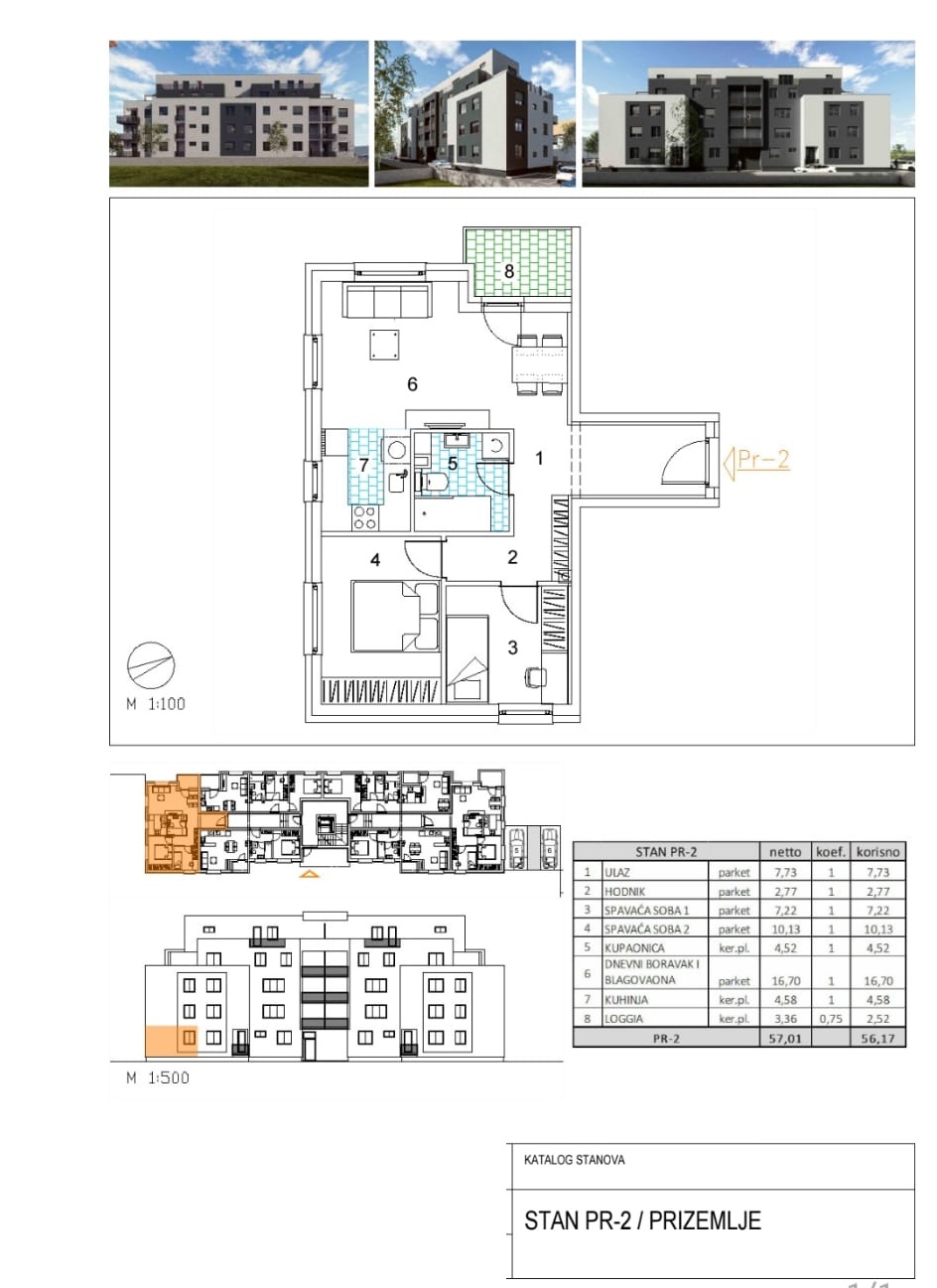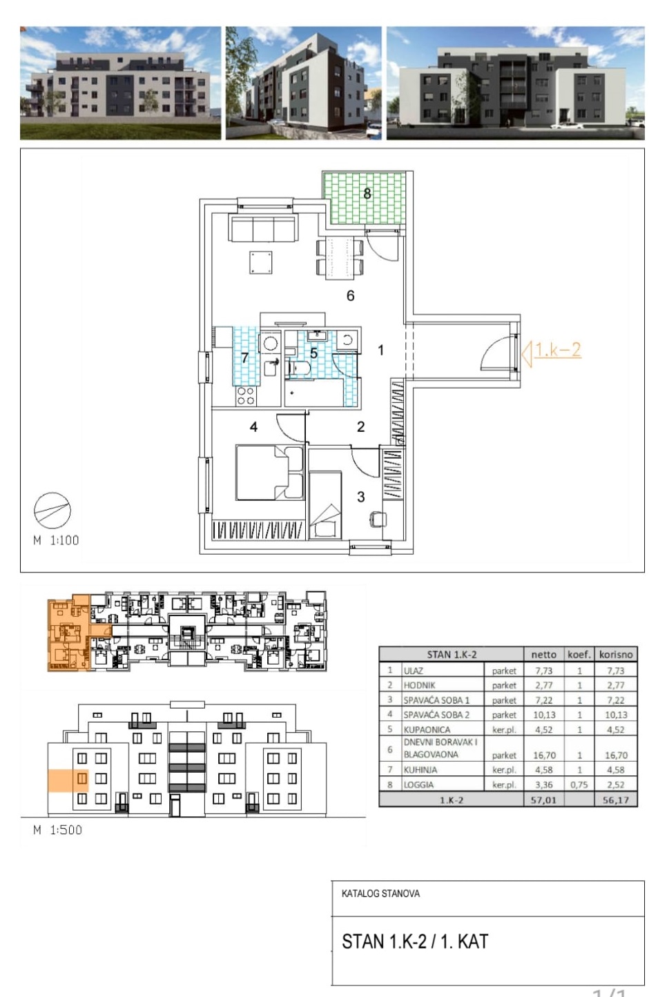 Trosoban stan od 56.17 m2, dostupan u prizemlju, 1. i 2. katu kvalitetne novogradnje, od ukupno 5 katova, energetskog razreda A/A+. Već prepoznata kvaliteta provjerenog investitora, osigurava odličnu izvedbu i dobro osmišljen projekt.
