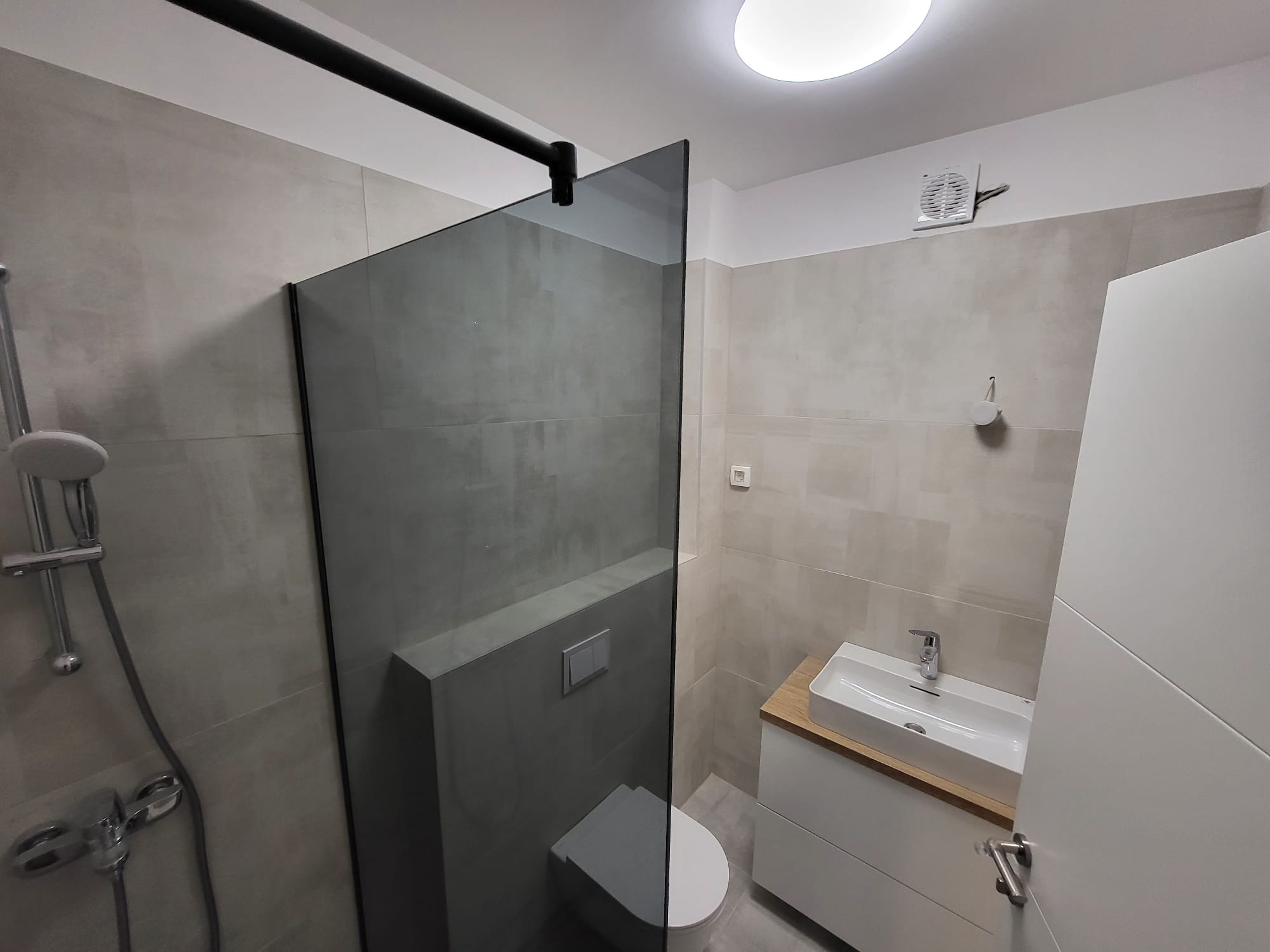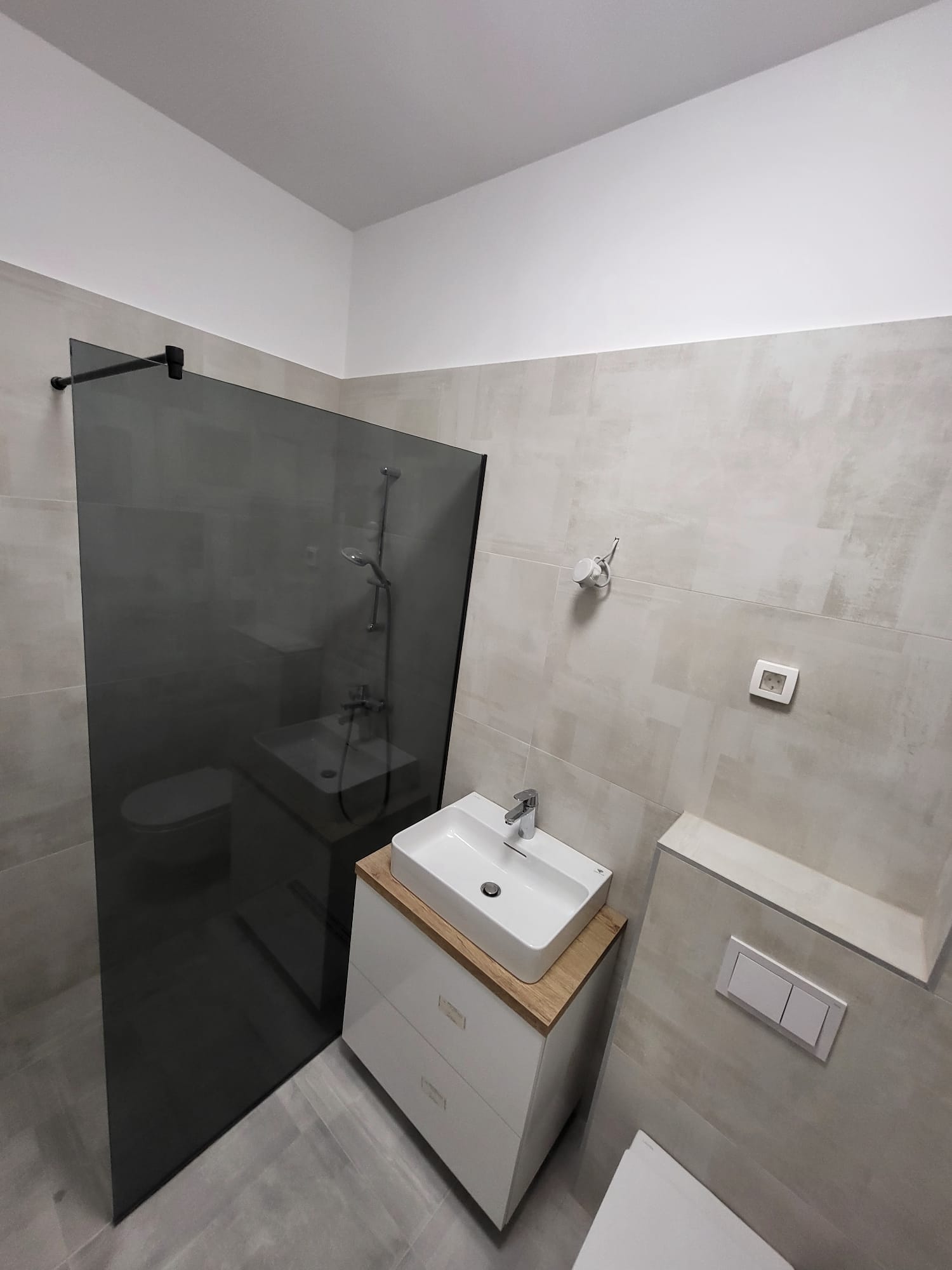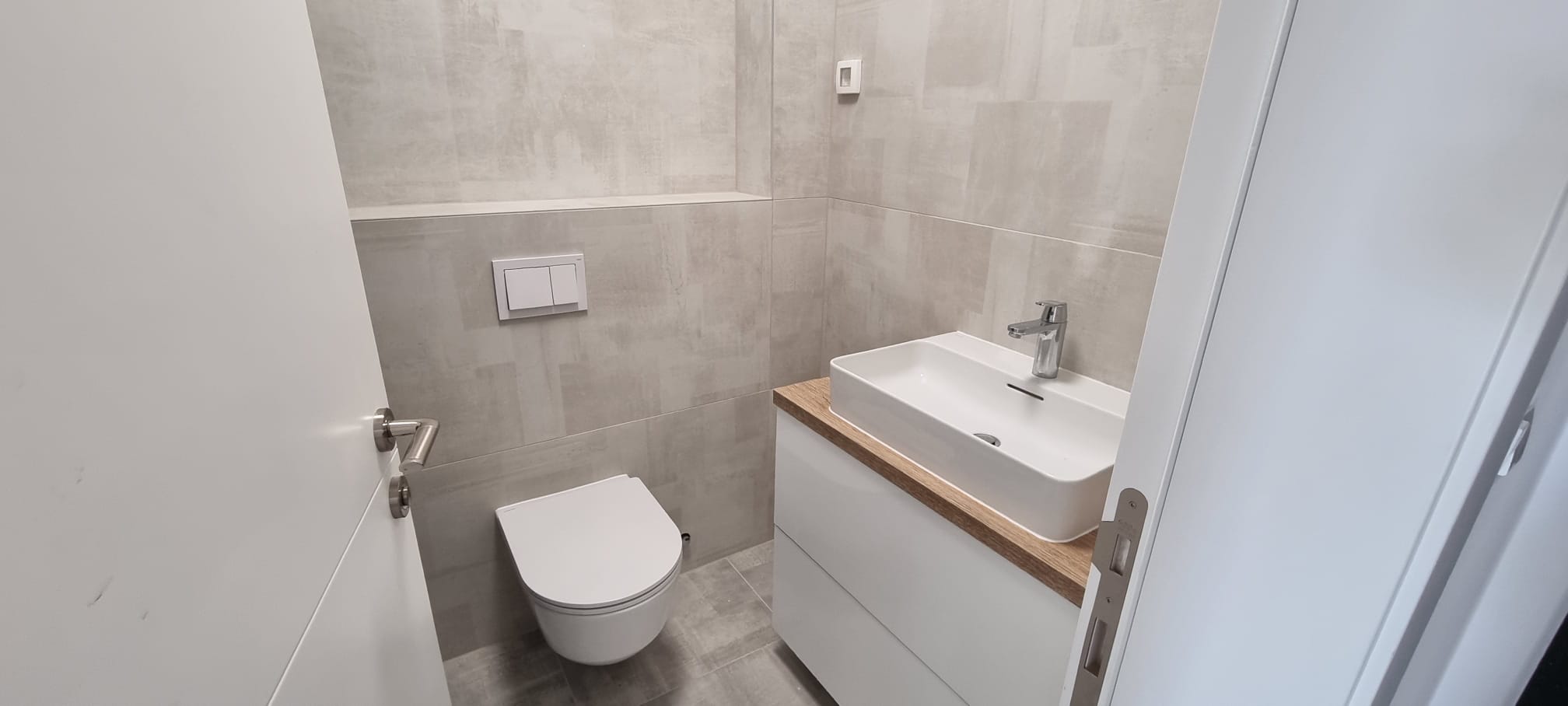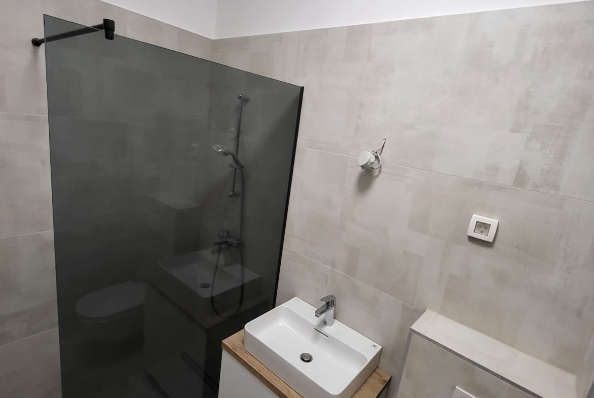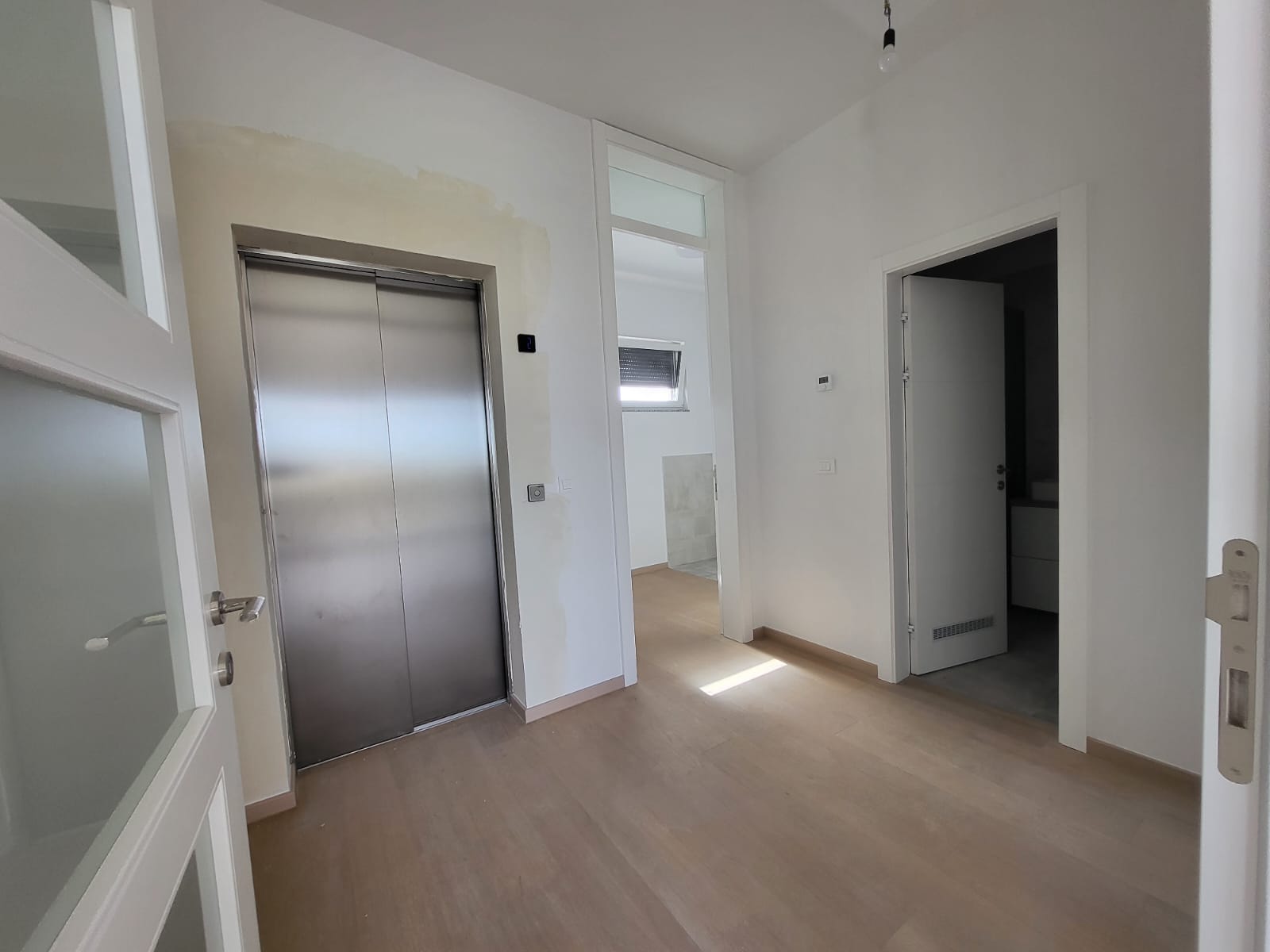 2.etaža (uvučeni kat) – prostrani dnevni boravak s blagovaonicom i kuhinjom, velikim staklenim površinama i izlaskom na prostranu terasu, degažman, vešeraj i stubište. Stan ima i pripadajuće spremište u prizemlju zgrade.