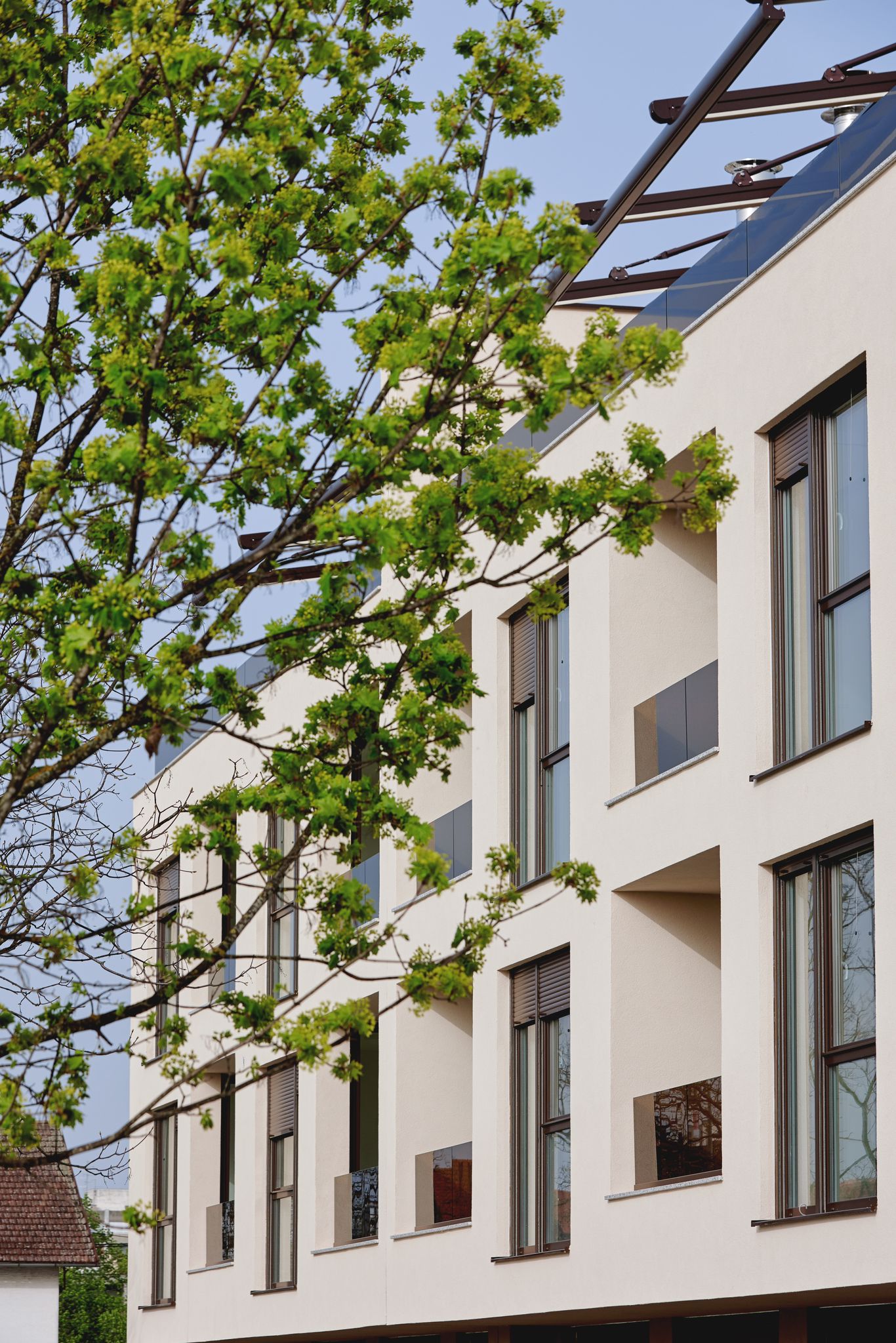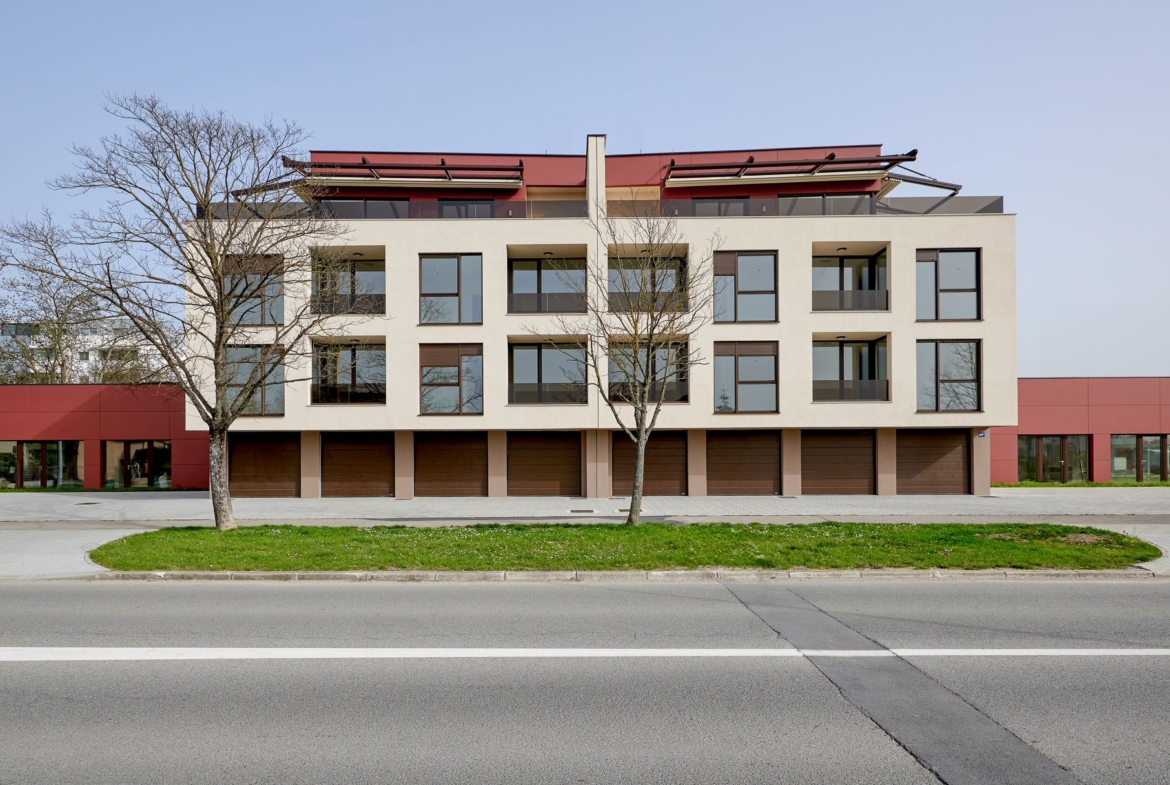 Stan se nalazi u stambenoj zgradi, smještenoj u mirnom dijelu naselja, okruženoj zelenilom. Zgrada ima ukupno dva kata i dodatni uvučeni kat. Izuzetna komfornost objekta omogućena je širokim prilazom s glavne ulice, što omogućuje ulazak automobilom u zasebnu garažu. Iz prizemlja zasebnih garaža, protežu se zasebna spremišta i ostakljeno stubište s dizalom. Dizalo vodi na sve etaže, a uvučeni kad ima zaseban pristup, što mu osigurava potpunu diskreciju.