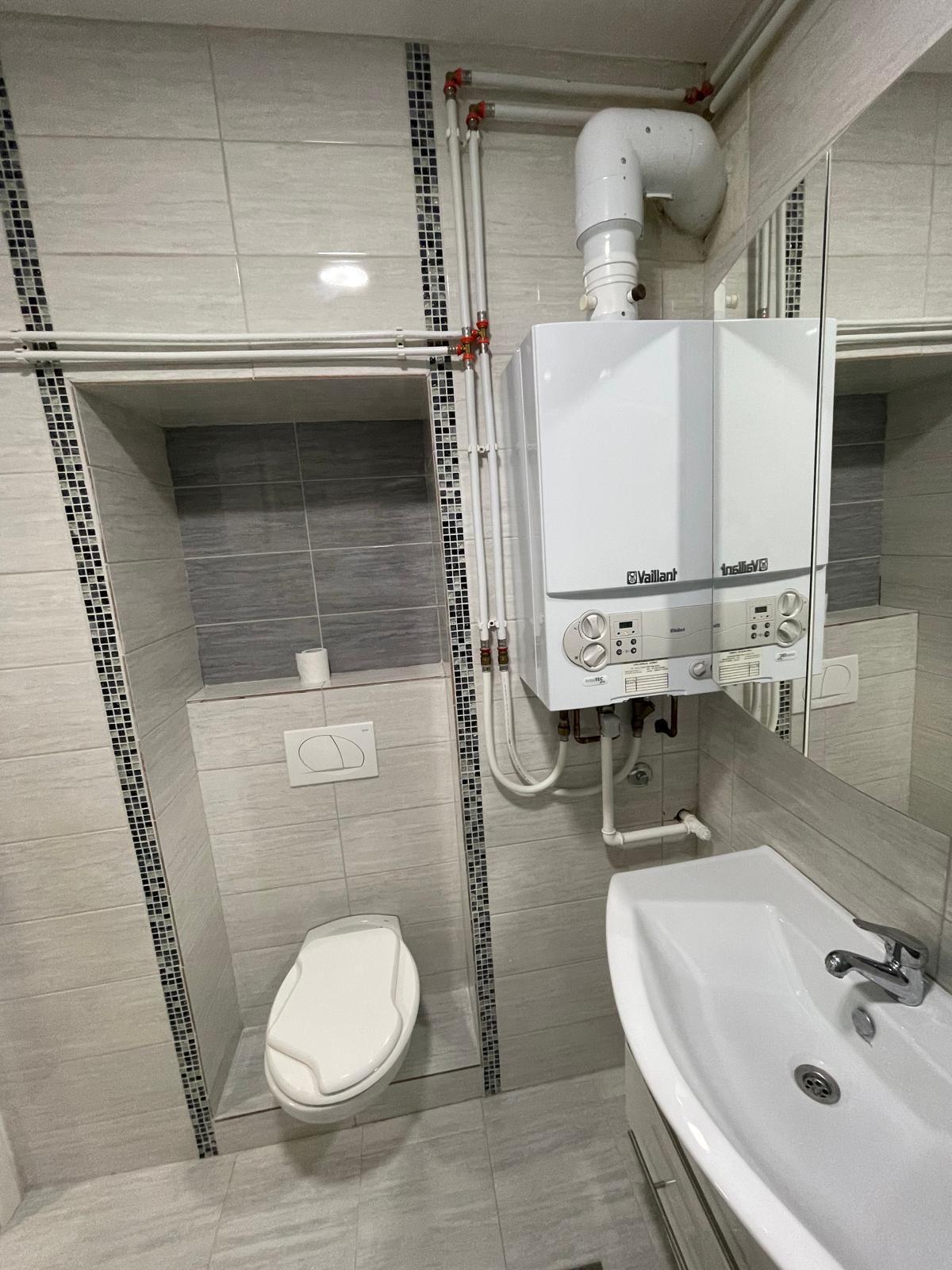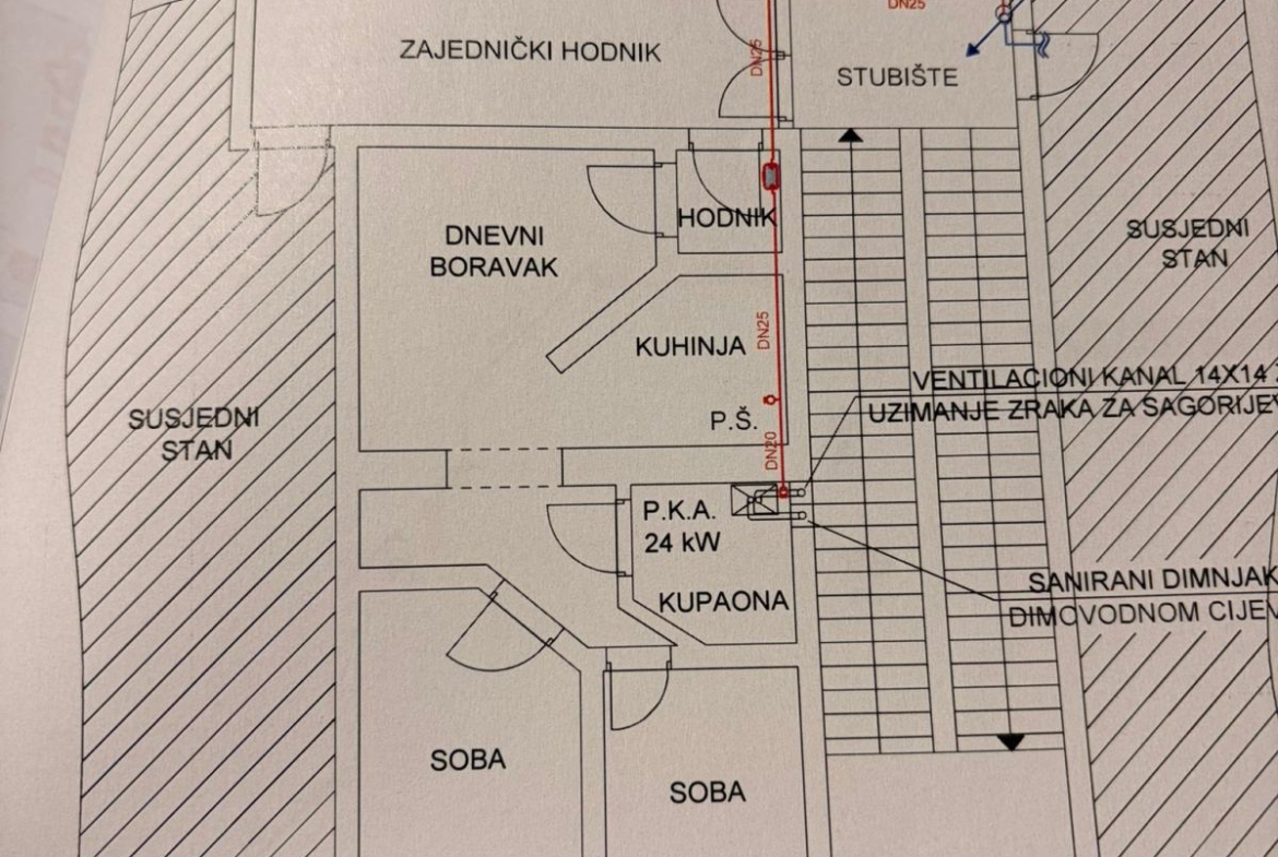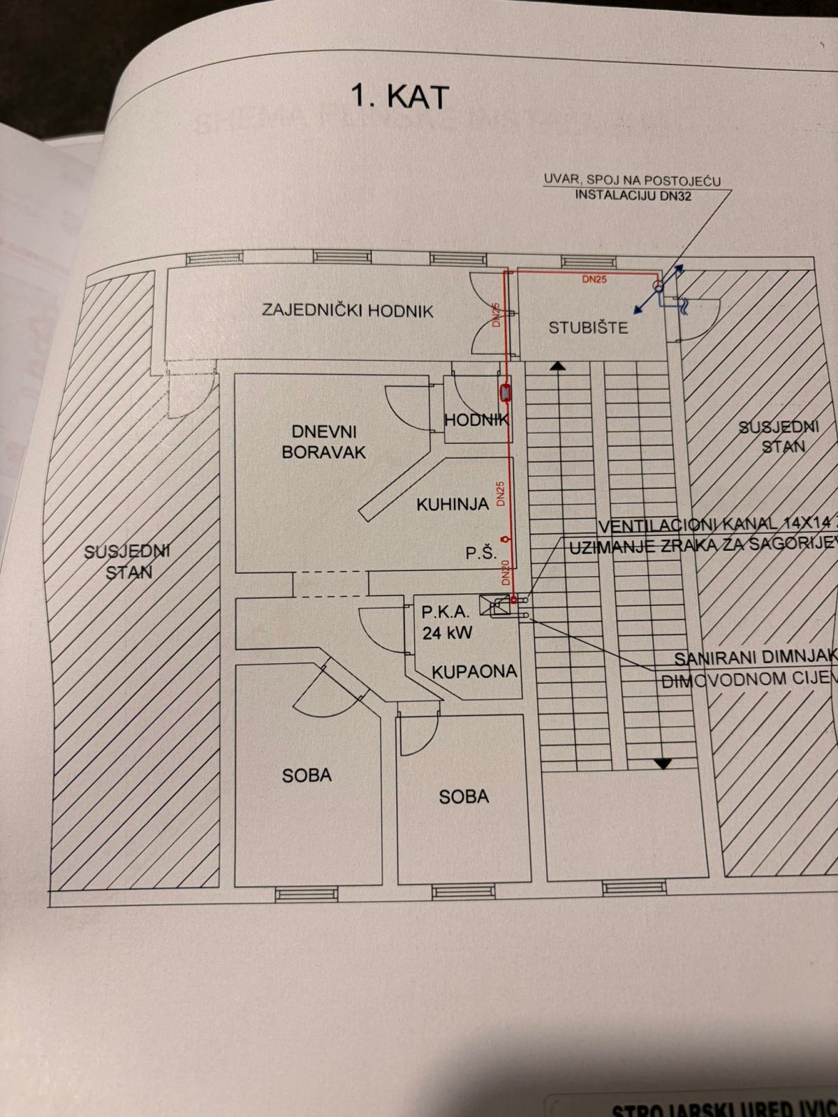 Grijanje i topla voda su na gradsku plinaru putem kondenzacijskog bojlera Vaillant koji je redovno servisiran, što osigurava pouzdanost i energetsku učinkovitost.