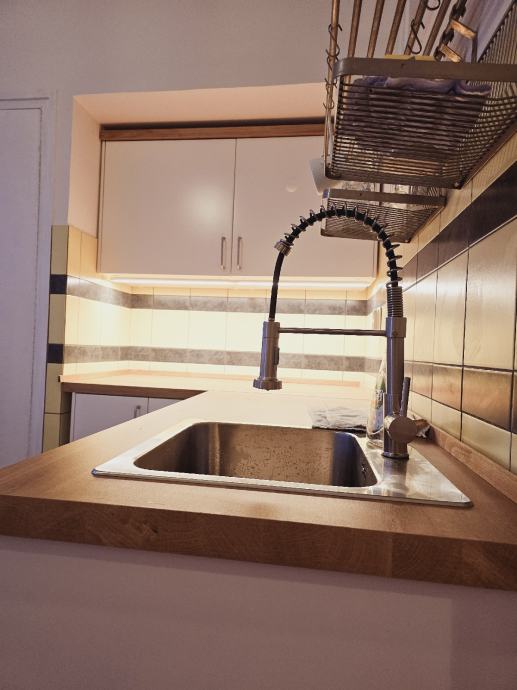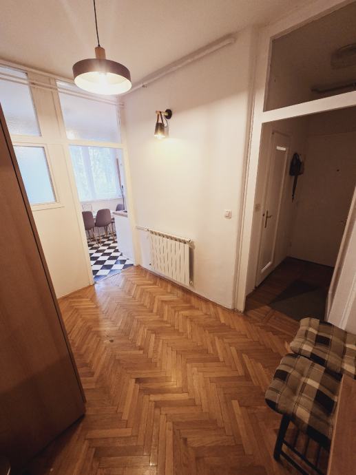 Stan se sastoji od ulaznog prostora/predsoblja, kuhinje i blagovaonice s izlaskom na balkon, dodatne prostrane sobe, trenutno namijenjene za dnevni i spavaći prostor, te kupaonice.
